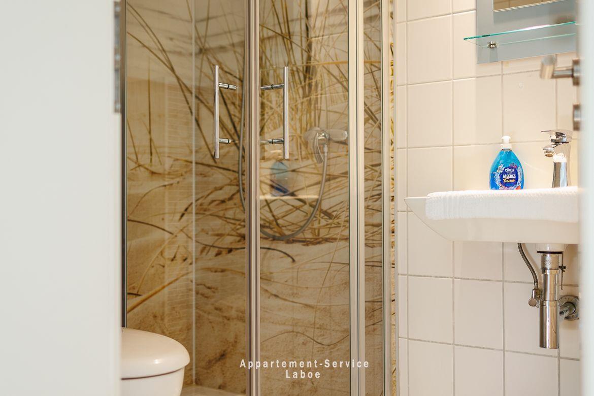Ferienwohnung Bellevue W06 in Laboe bietet komfortablen Meerblick, Balkon und Strandkorb nur 30 Meter vom Strand entfernt.