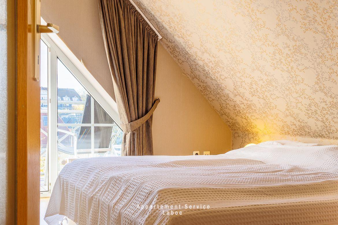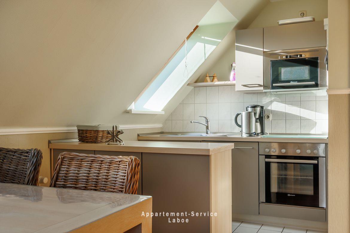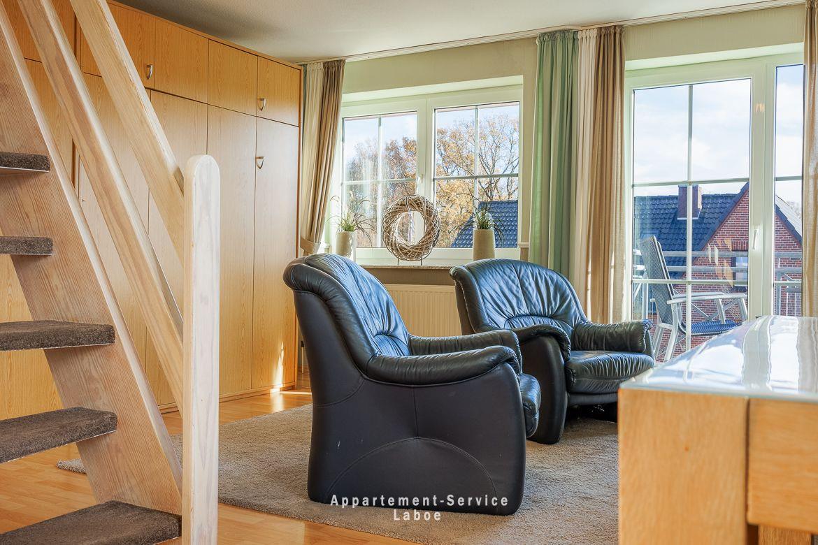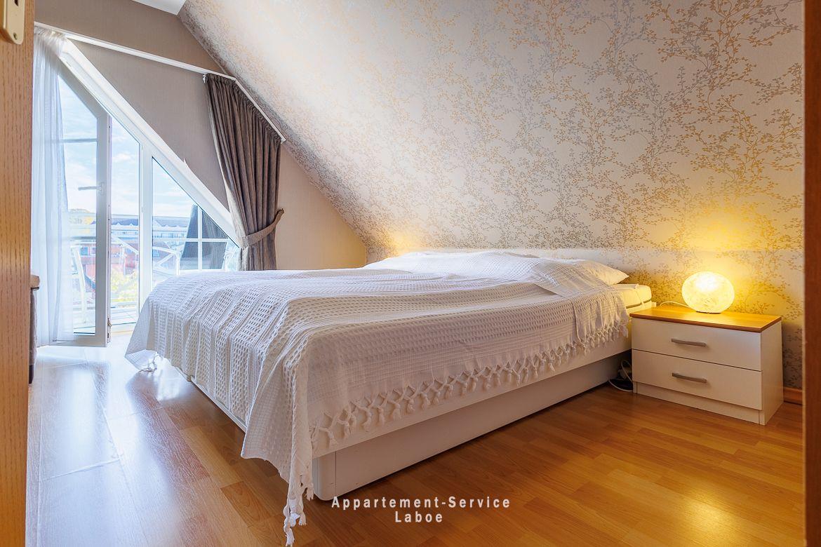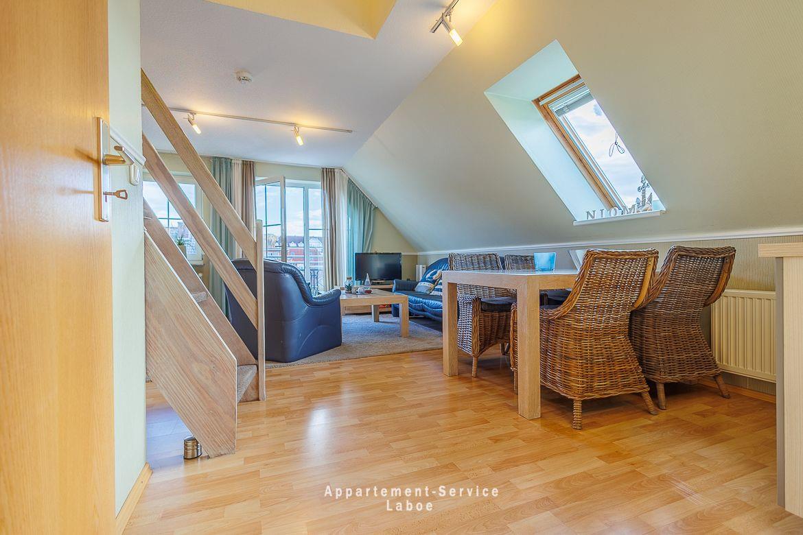 Moderne Maisonette-Ferienwohnung Bellevue W10 in Laboe, nur 30 m vom Strand entfernt, mit Balkon und eigenem Stellplatz.