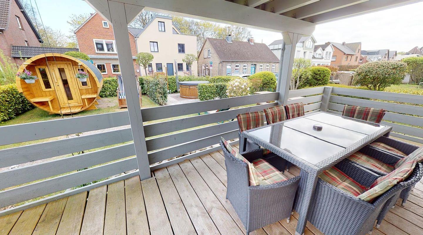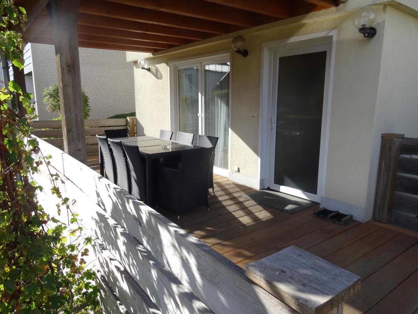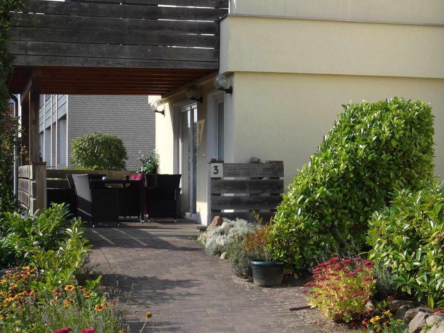 Zwei Terrassen schenken dir Sonne zu jeder Tageszeit: Eine liegt direkt am Eingang – ideal für den Start in den Tag. Die zweite befindet sich auf der gegenüberliegenden Seite, mit Blick auf die Kieler Förde – ein wunderbarer Platz für ruhige Stunden an der frischen Seeluft.
