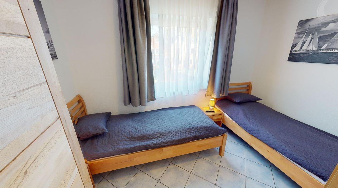Mit 80 Quadratmetern Wohnfläche ist diese Wohnung ideal für Familien, kleine Gruppen oder Paare, die sich ein großzügiges Zuhause auf Zeit am Meer wünschen. Zwei gemütliche Schlafzimmer sorgen für erholsame Nächte – und im Wohnzimmer steht zusätzlich ein komfortables Doppelschrankbett bereit, das bei Bedarf ganz unkompliziert für zwei weitere Schlafplätze sorgt.