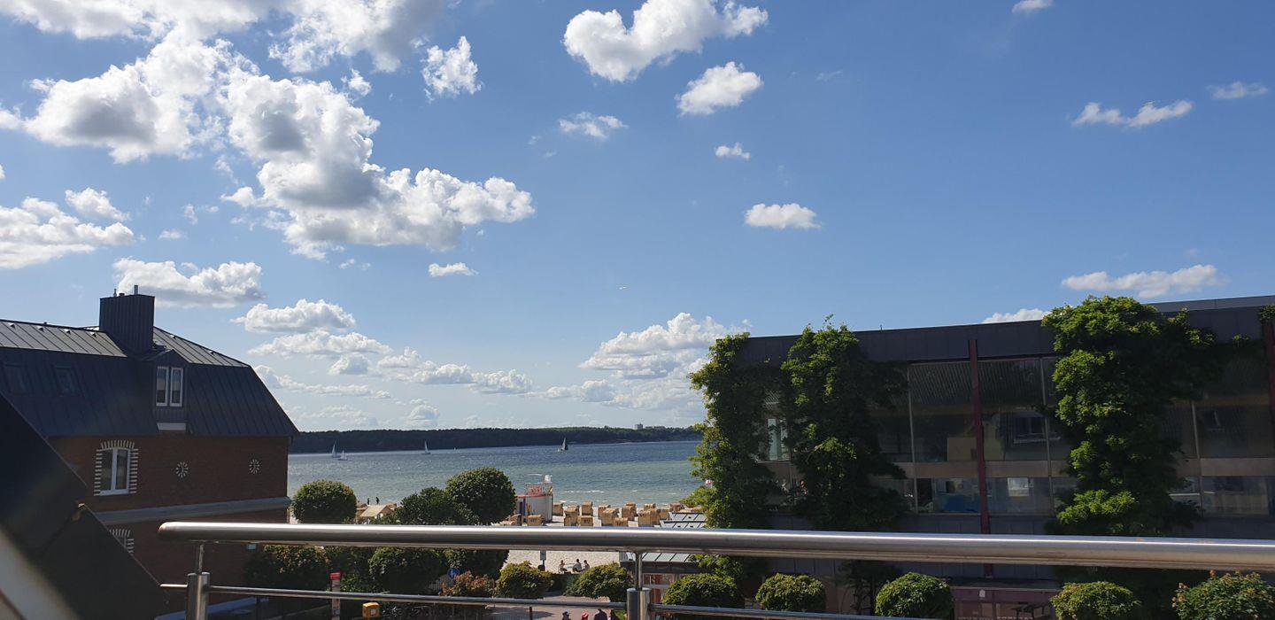 Großzügige Ferienwohnung Seewind W06 in Laboe mit Meerblick, drei Balkonen und nur 20 m zum Strand.