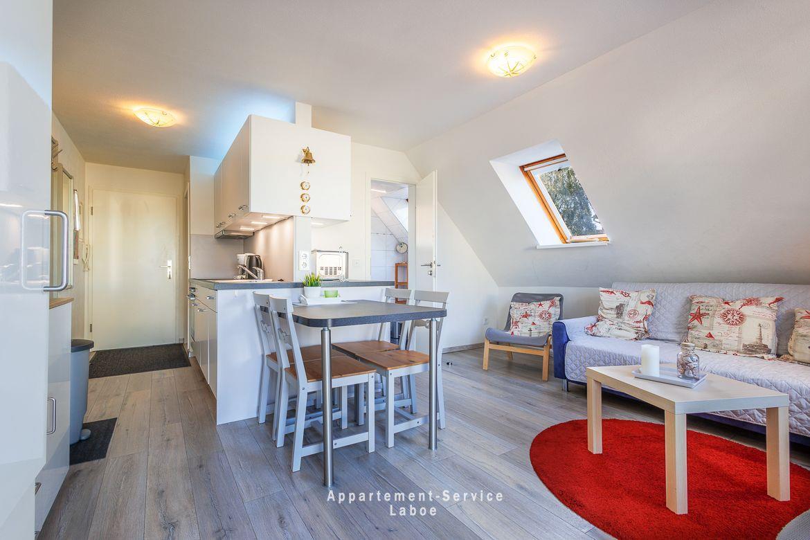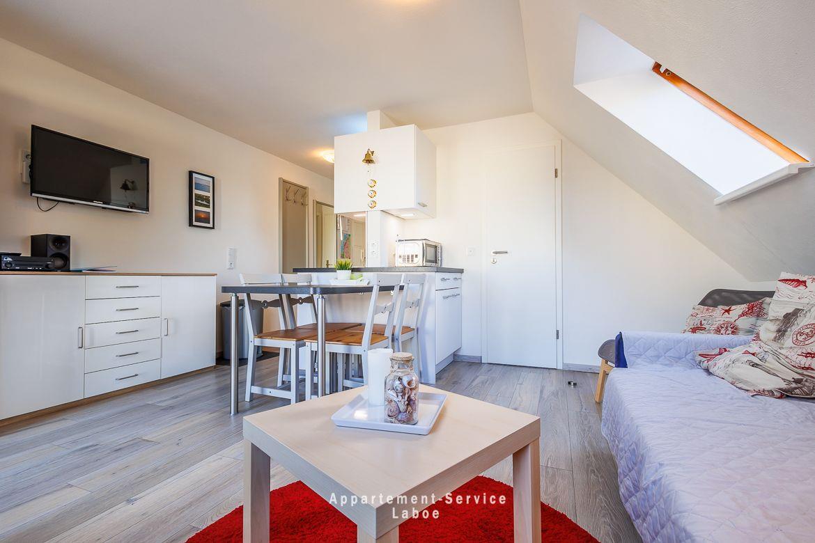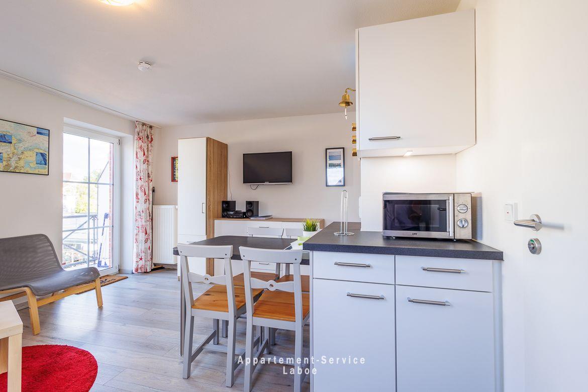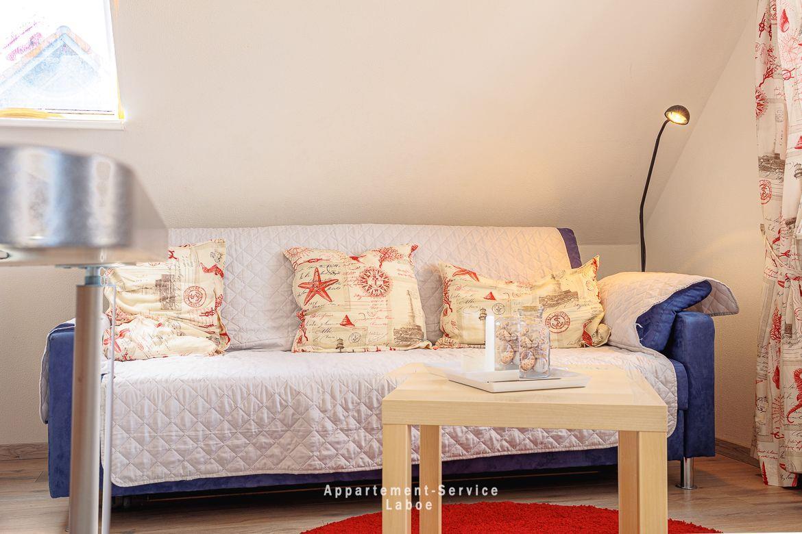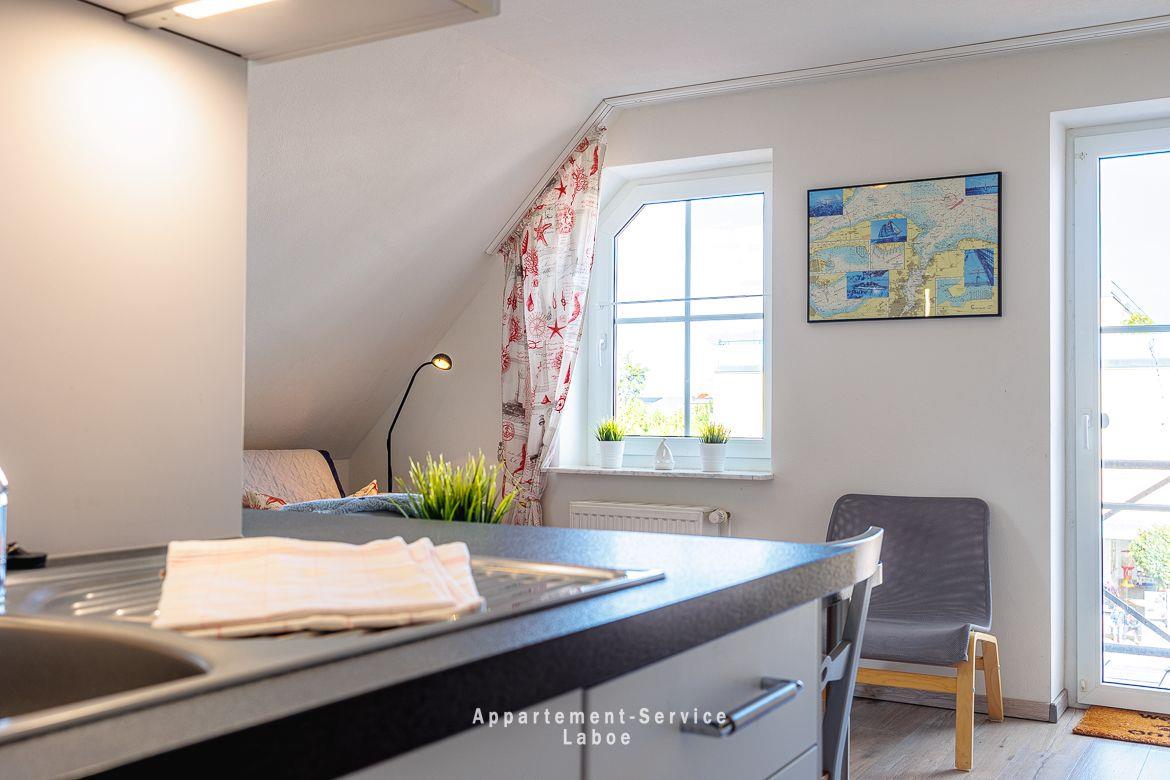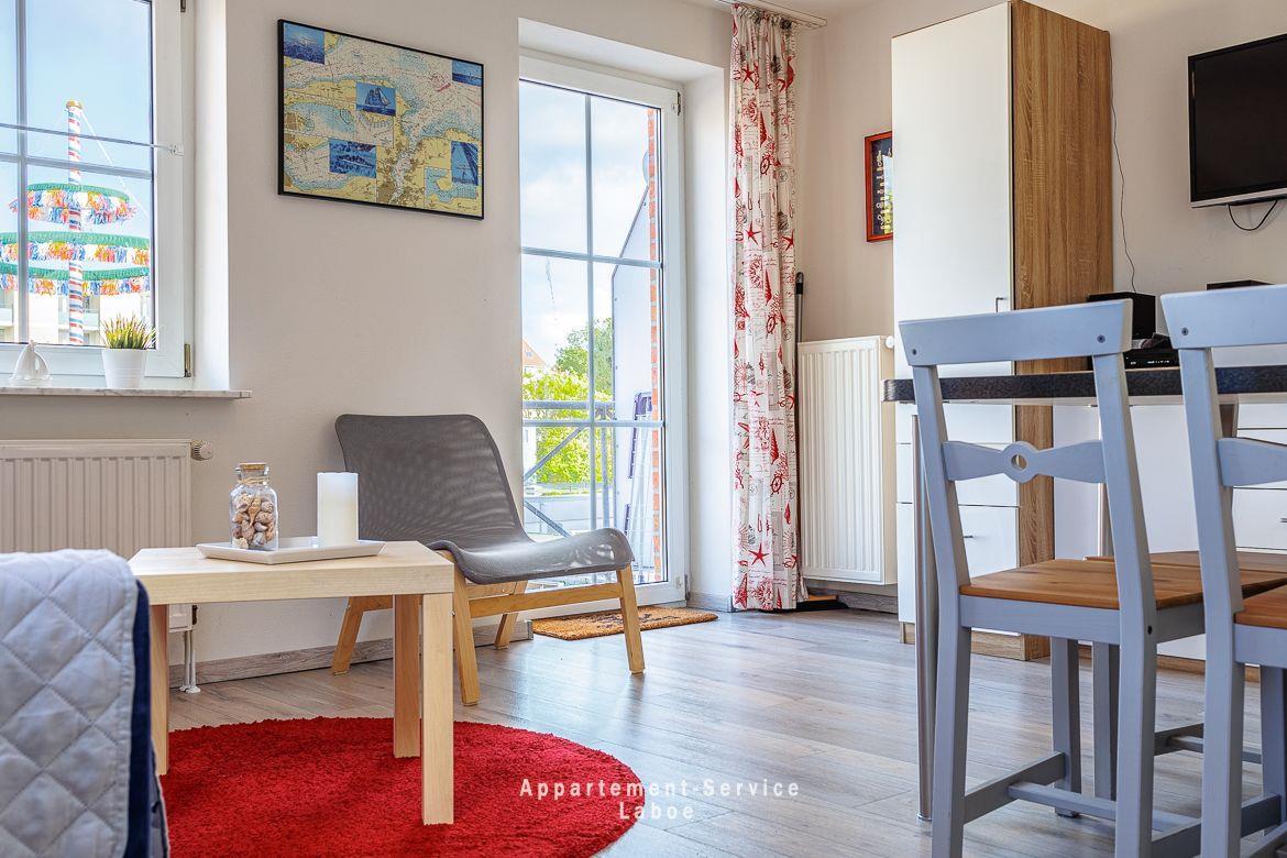 Charmante 2-Zimmer-Ferienwohnung „Seemann Budle“ mit Balkon und seitlichem Meerblick in Laboe, nur 120 m vom Strand entfernt.