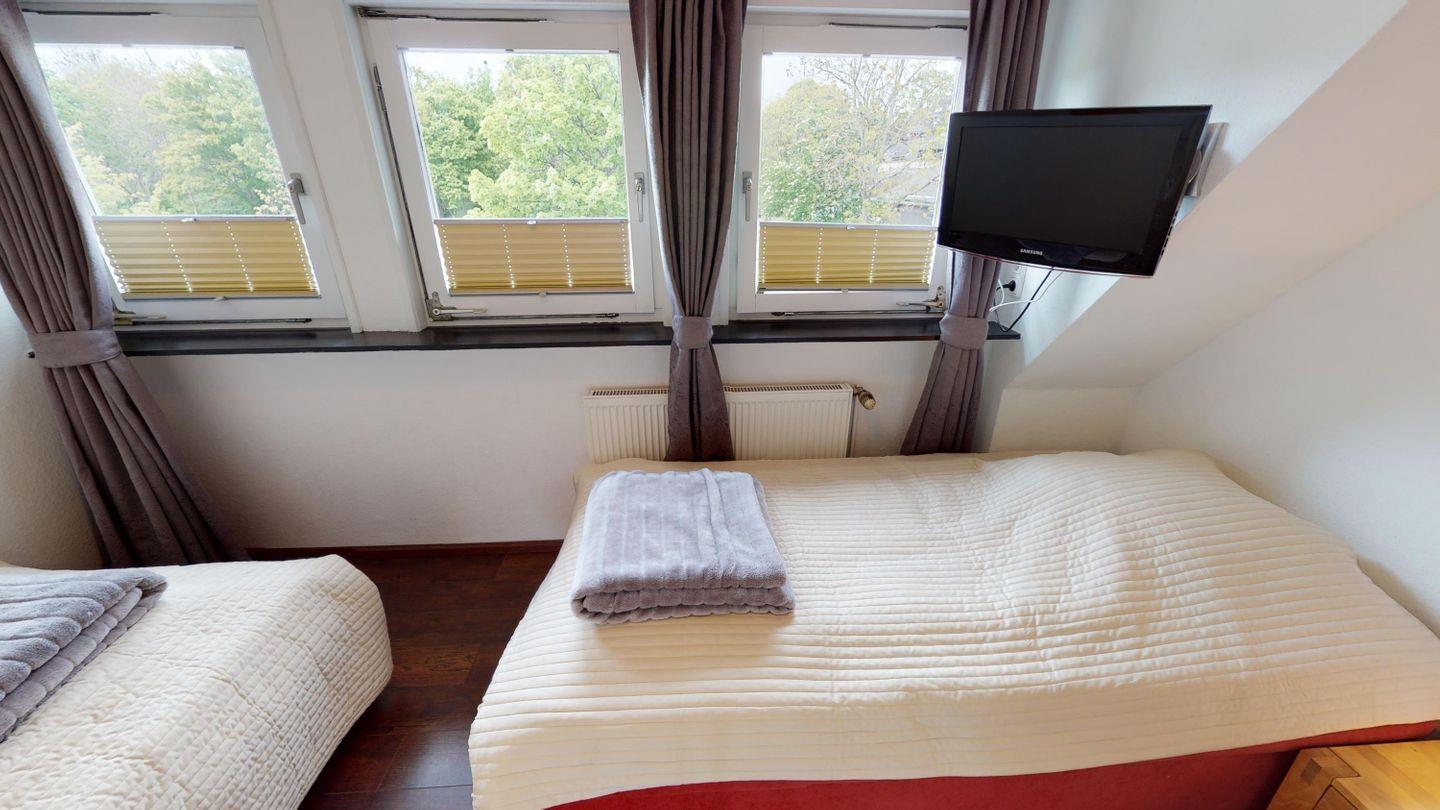 Das Untergeschoss bietet dir zusätzliche Rückzugsmöglichkeiten: ein weiteres Schlafzimmer mit Doppelbett, ein Saunabereich mit Dusche und Liegen, ein Hauswirtschaftsraum mit Waschmaschine und Trockner sowie ein Kickertisch im Flur für gesellige Runden.