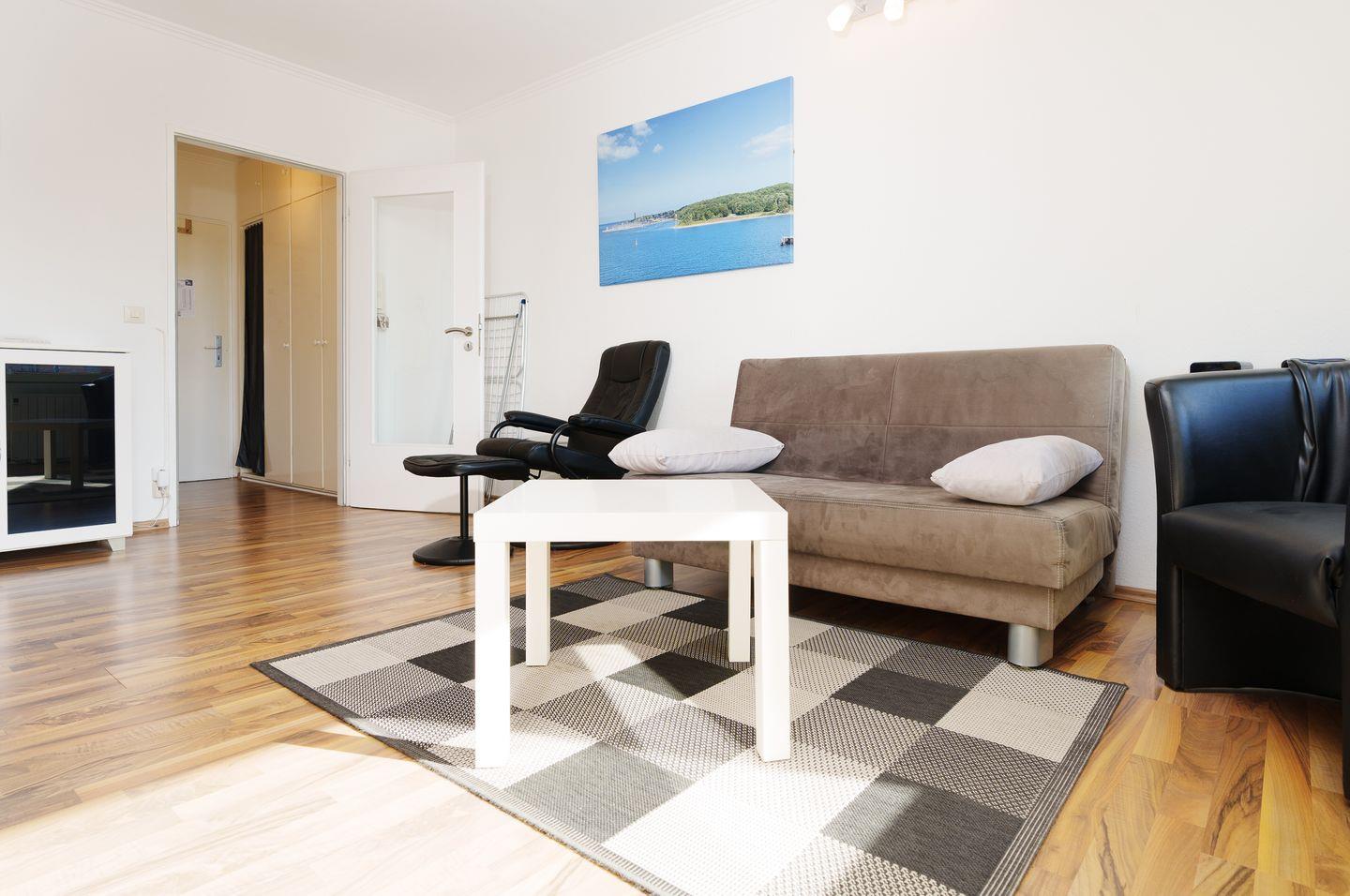 FeWo W05 im Erholungszentrum Laboe: Ca. 40?m² große 2-Zimmer-Wohnung im 1. OG mit Fahrstuhl, ideal für bis zu 3 Personen. Wohnbereich mit Sitzgruppe, Schlafsofa, TV und Zugang zum Balkon. Separate Küche, Schlafzimmer mit zwei Einzelbetten, Duschbad mit WC. Gemeinschaftsparkplätze an der Anlage, Fahrradabstellraum vorhanden. Zentrale Lage: ca. 150?m zum Kurstrand und zur Promenade, Einkaufsmöglichkeiten und Wochenmarkt in direkter Nähe. Nichtraucher, keine Haustiere.