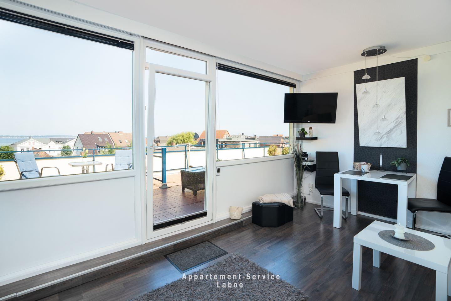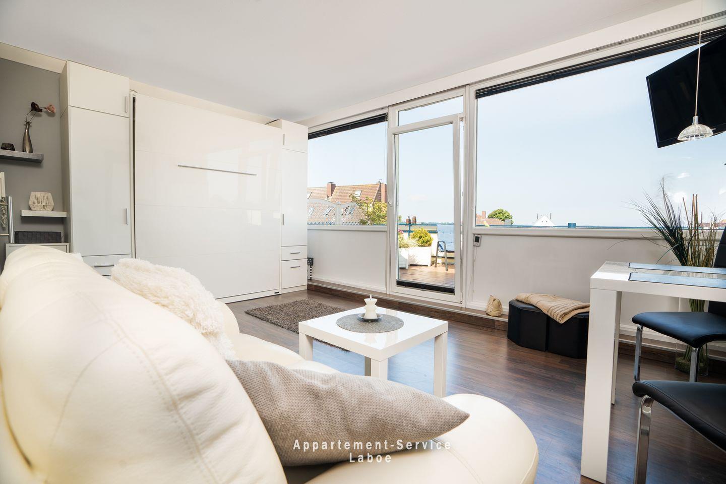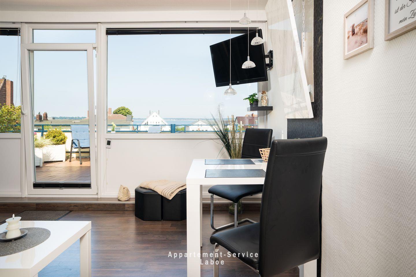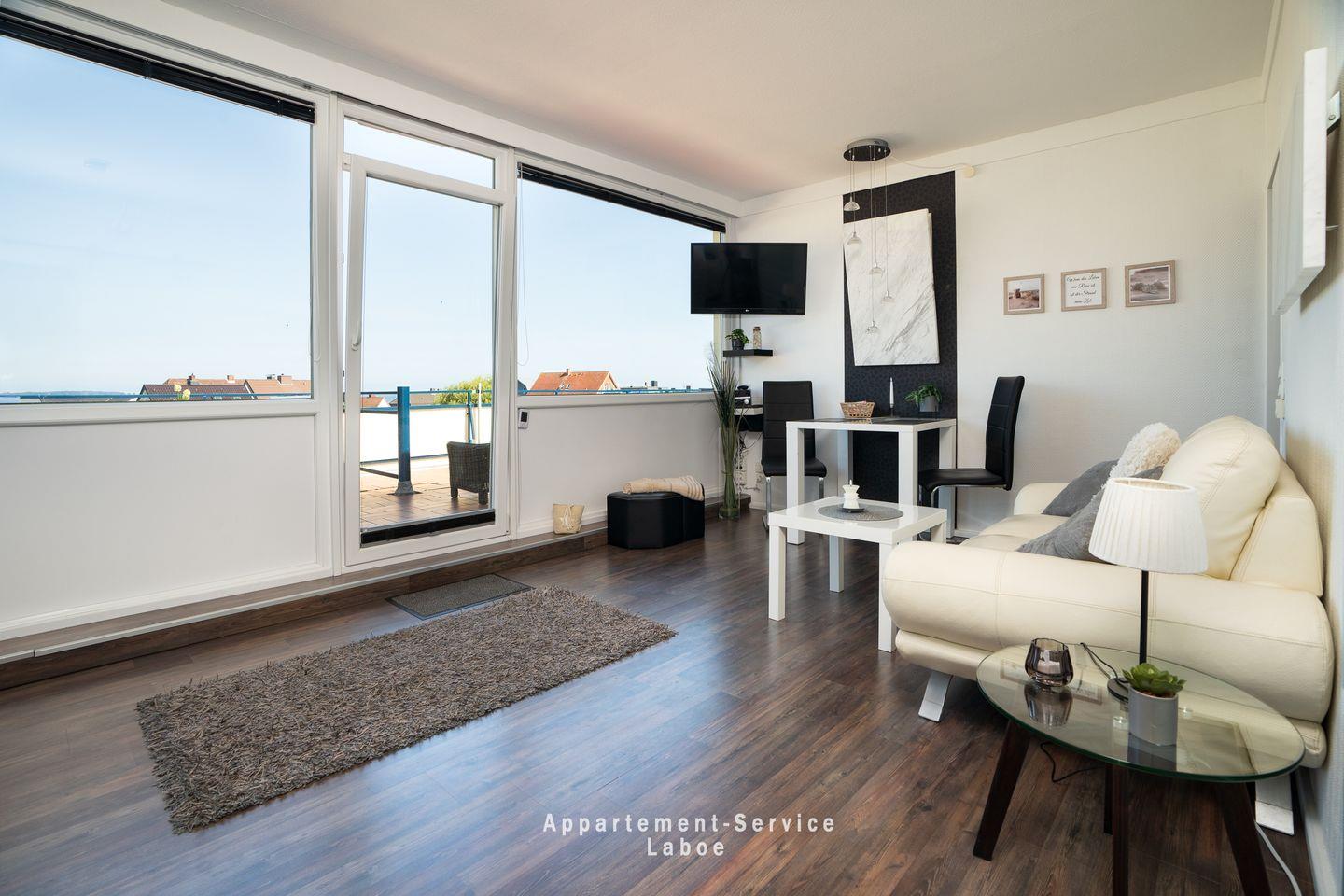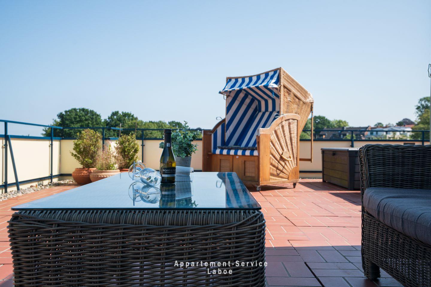 Die Fewo Sünnstrohl in Laboe bietet moderne Ausstattung, Meerblick und eine große Dachterrasse nur wenige Meter vom Strand entfernt.