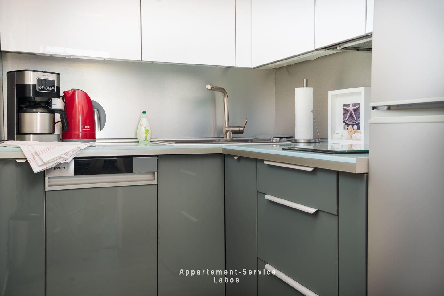 Die separate Küche ist mit modernster Technik ausgestattet: Induktions-Kochfeld, Geschirrspülmaschine, eine Kaffeemaschine, Wasserkocher und diverse Kleingeräte sorgen dafür, dass es dir an nichts mangelt. Unvergessliche Sonnenuntergänge, ein romantischer Abend zu zweit, ein stimmungsvolles Candlelight-Dinner oder aber eine gesellige Runde hoch oben über den Dächern Laboes … von so einem Szenario träumt jeder Urlauber. In der Ferienwohnung „Sünnstrohl“ wird dieser Traum wahr.