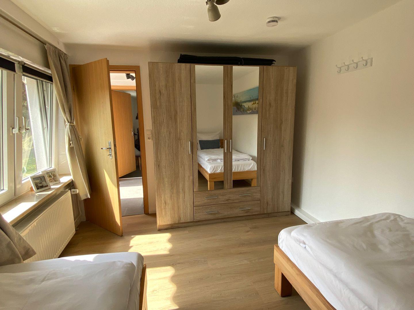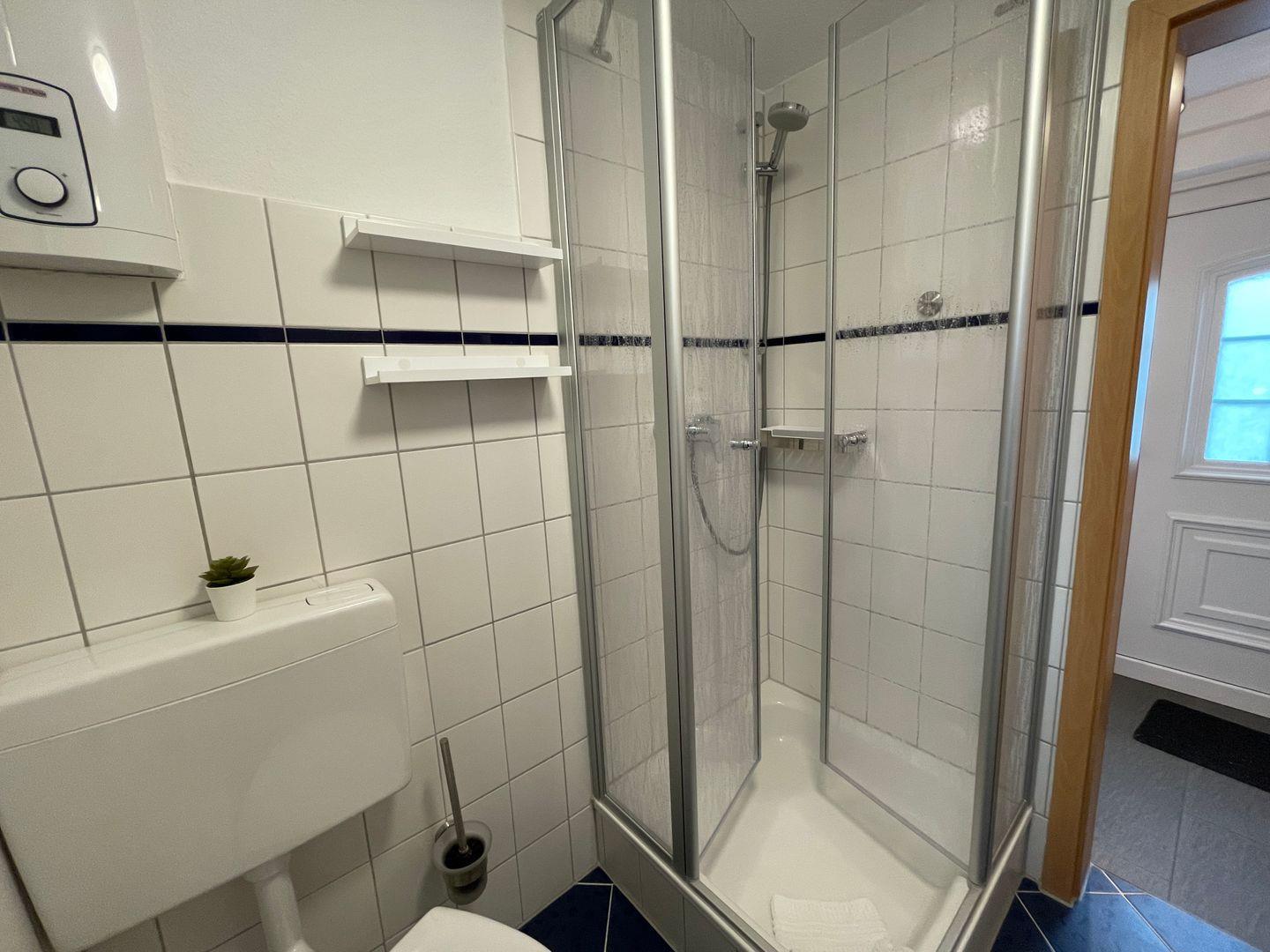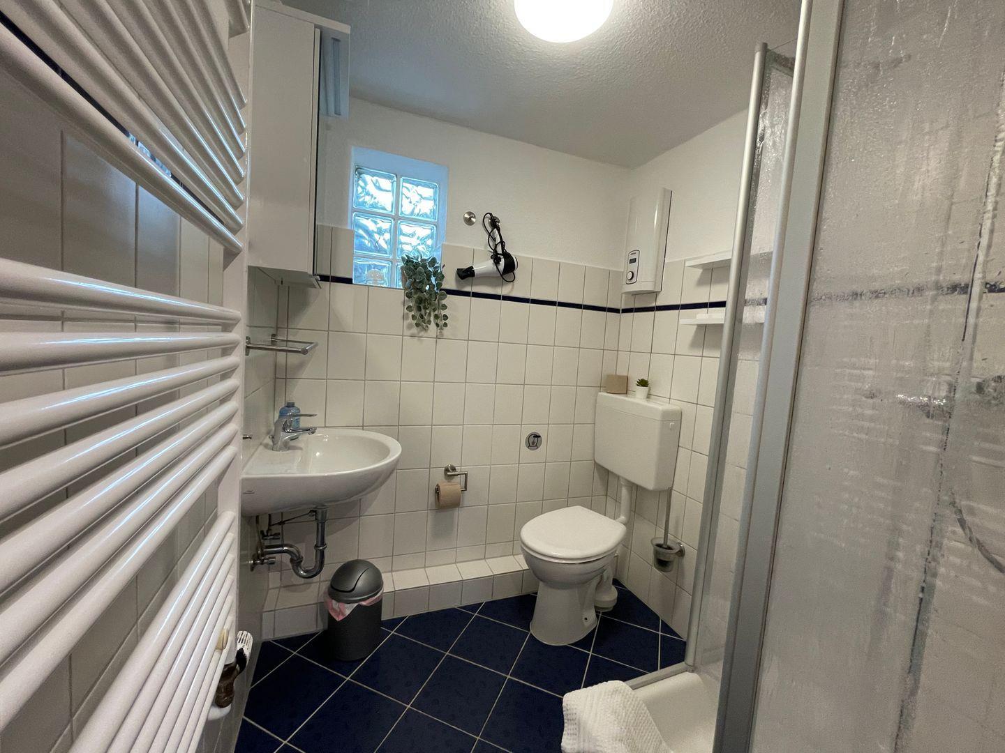 Das Schlafzimmer ist mit zwei Einzelbetten möbliert und bietet dir eine ruhige Schlafumgebung. Das Badezimmer verfügt über eine Dusche und WC – schlicht, funktional und gepflegt.
