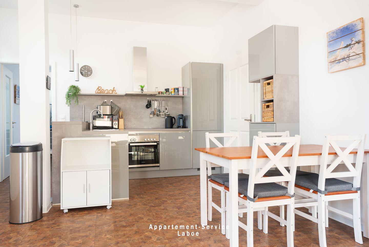 Die Küche ist vollständig eingerichtet und bietet alles, was du brauchst, um dich auch im Urlaub selbst zu versorgen. Am Esstisch findet ihr Platz für Frühstück mit Brötchenduft oder ein Abendessen nach einem langen Strandtag. Das Badezimmer ist modern und mit einer Dusche ausgestattet. Natürlich steht dir auch WLAN kostenfrei zur Verfügung, damit du deine Erlebnisse mit anderen teilen oder einfach mal online abschalten kannst.