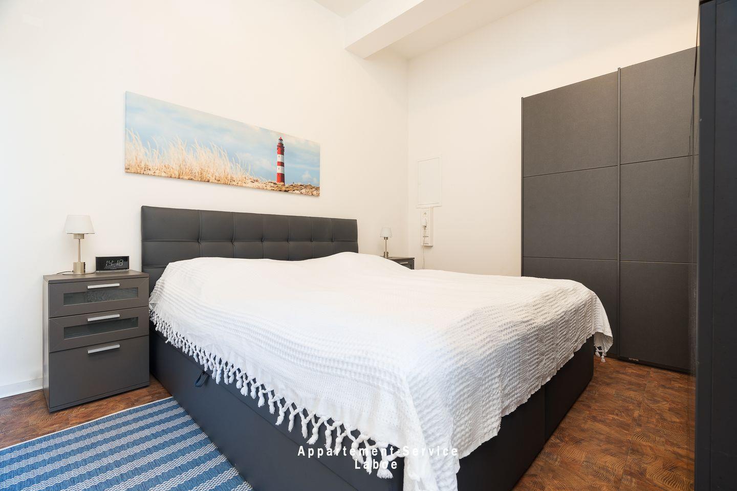 Der Wohnbereich ist offen und hell. Die gemütliche Sitzgruppe lädt zum Ankommen ein, das große Schlafsofa bietet eine bequeme Ruhefläche für die Nacht. Im Schlafzimmer wartet ein hochwertiges Boxspringbett, das für erholsamen Schlaf sorgt. Auch ein Fernseher ist dort vorhanden, falls du den Tag in Ruhe ausklingen lassen möchtest.