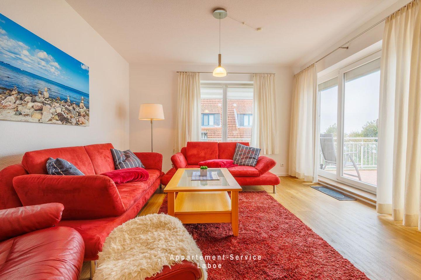 Moderne Ferienwohnung an der Strandpromenade in Laboe mit zwei Balkonen und Blick auf die Kieler Förde.