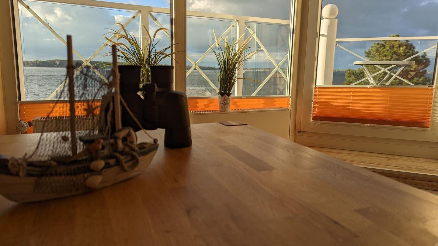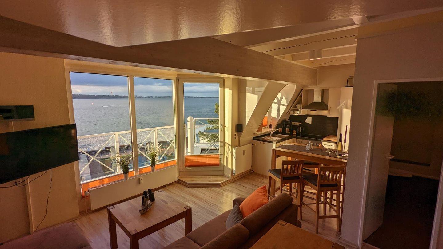 Und dann dieser Ausblick. Vom Balkon deiner Wohnung reicht der Blick über die Förde – von der Friedrichsorter Enge bis in die weite Kieler Bucht. Morgens beim Kaffee, abends beim Glas Wein: Das ist Urlaub mit Meeranschluss.