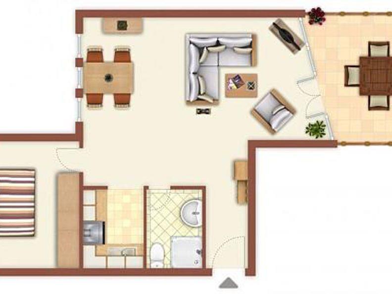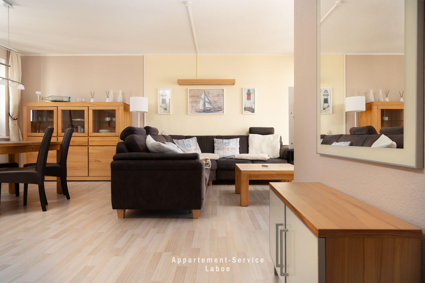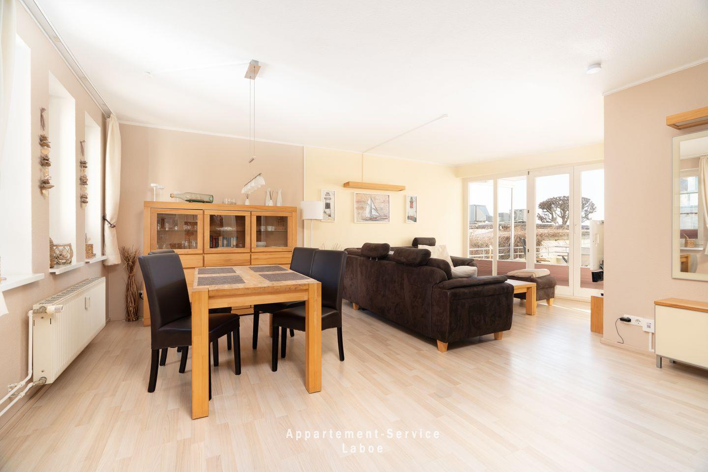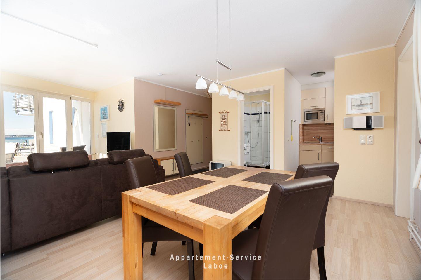 Auf etwa 51?m² Wohnfläche findest du eine durchdachte Raumaufteilung, die bis zu vier Personen ein angenehmes Urlaubszuhause bietet. Neben einem separaten Schlafzimmer mit Doppelbett steht dir im Wohnzimmer eine komfortable Schlafcouch zur Verfügung. Die moderne Küche ist vollständig ausgestattet, sodass du ganz flexibel zwischen Kochen, Ausgehen oder Frühstücken mit Meerblick wählen kannst.