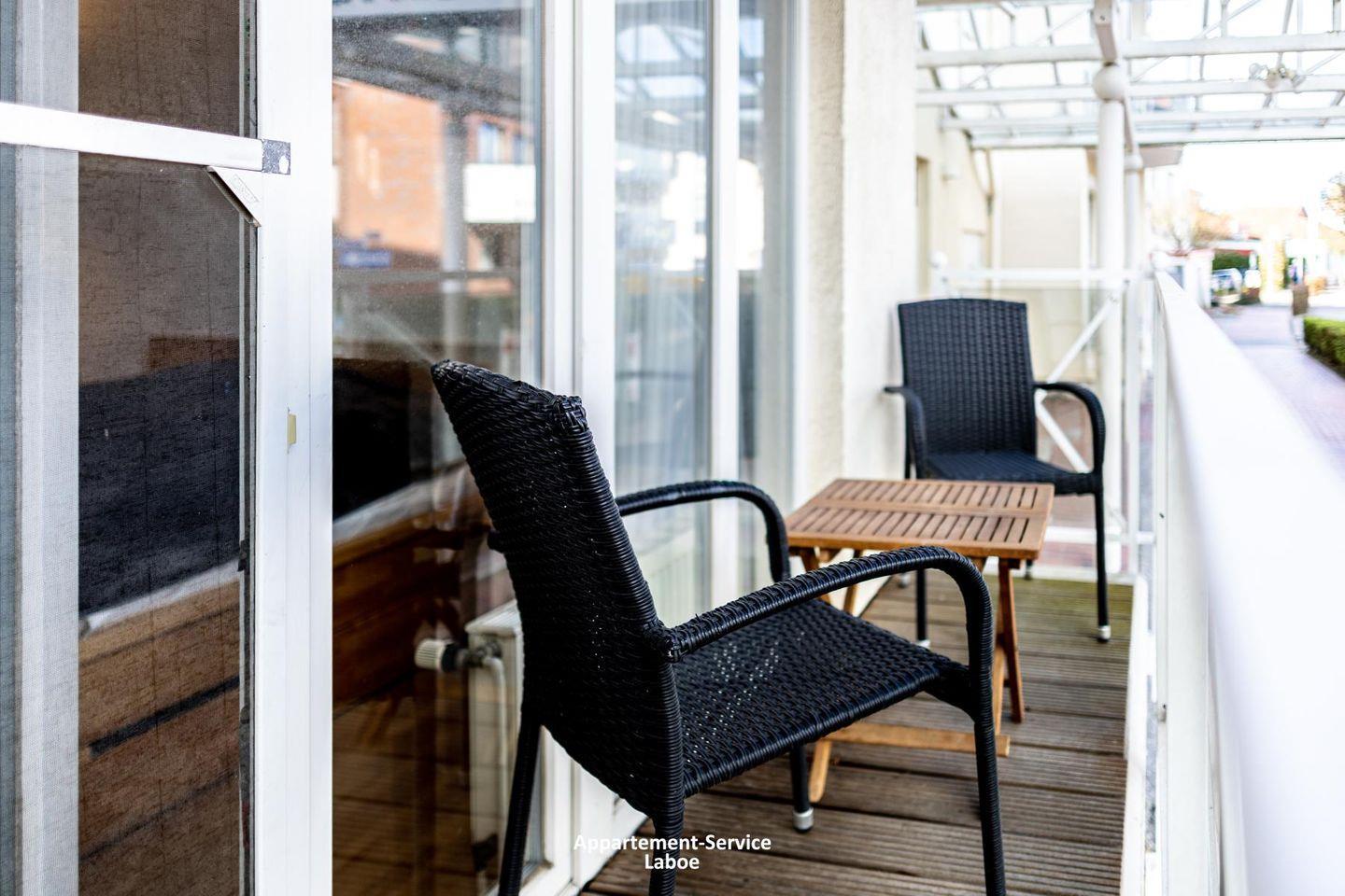 Charmantes 1-Raum-Apartment in Laboe, nur 20 Meter vom Strand entfernt, mit Balkon und moderner Ausstattung.