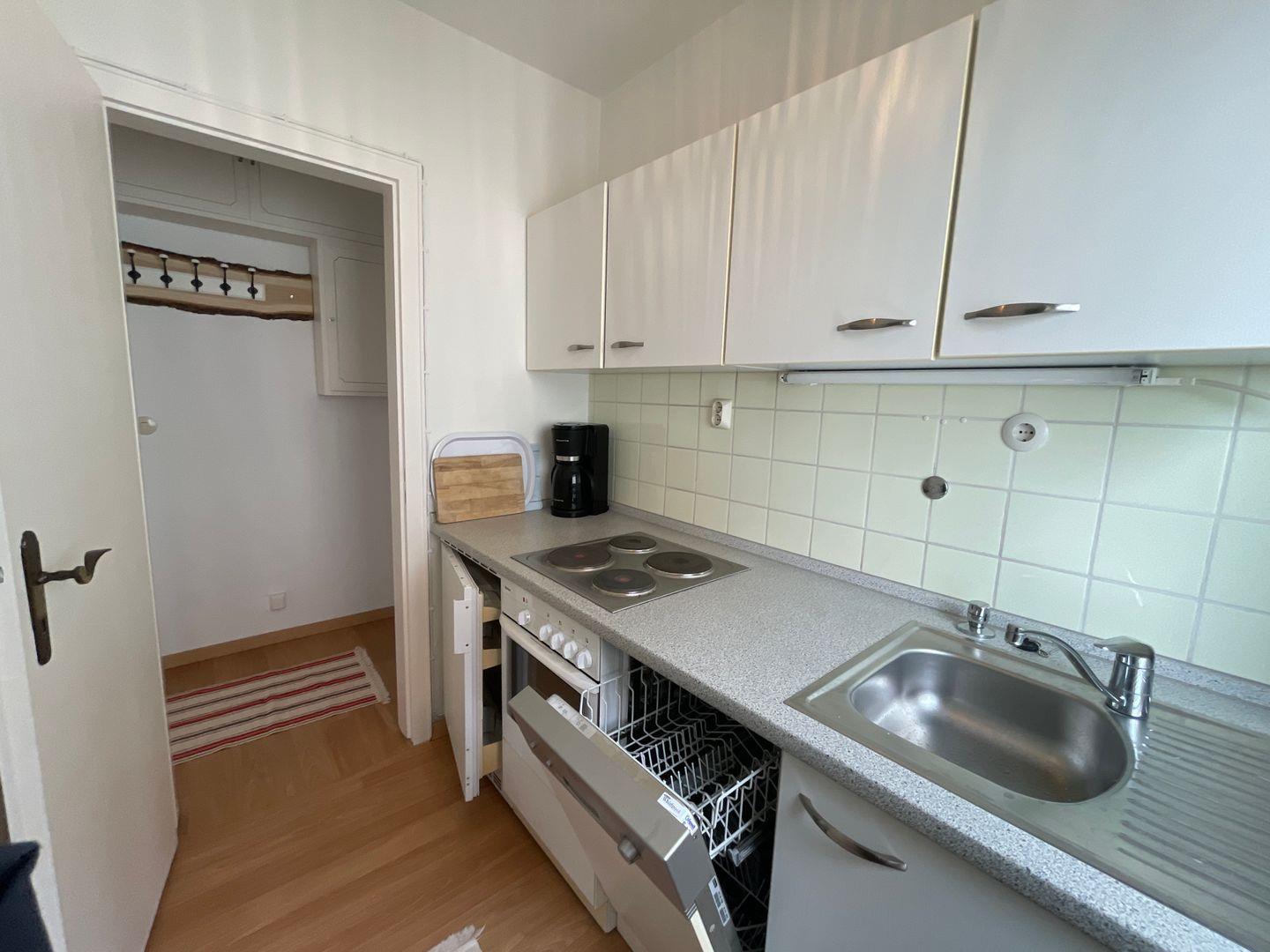 Die separate Küche ist vollständig ausgestattet – inklusive Plattenherd, Backofen, Spülmaschine, Kühlschrank und aller nötigen Küchenutensilien. Sie ist nicht mehr neu, aber gepflegt und funktional, sodass du auch im Urlaub problemlos selbst kochen kannst.