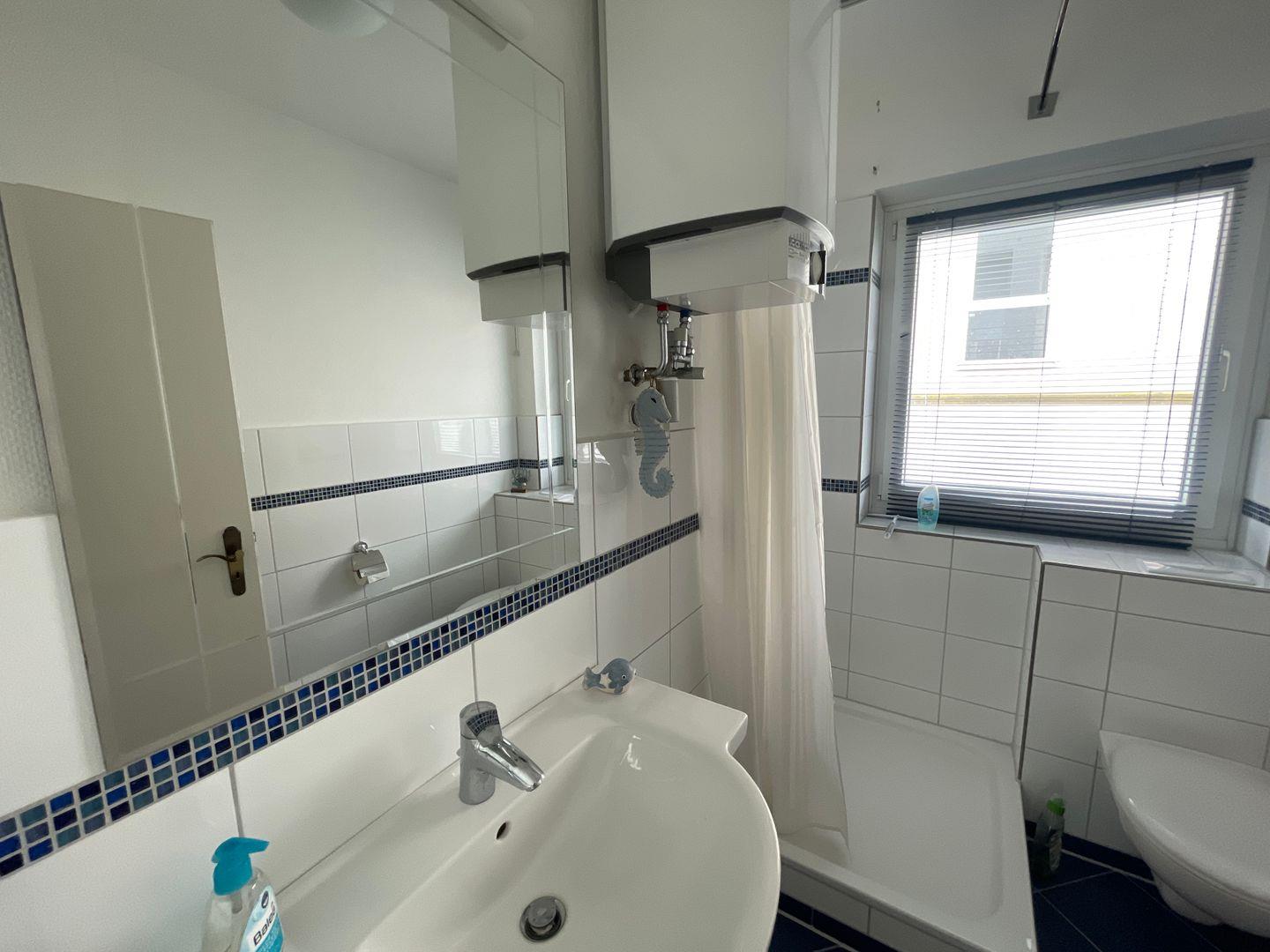 Das Badezimmer ist mit Dusche und WC ausgestattet – kompakt, sauber und zweckmäßig.