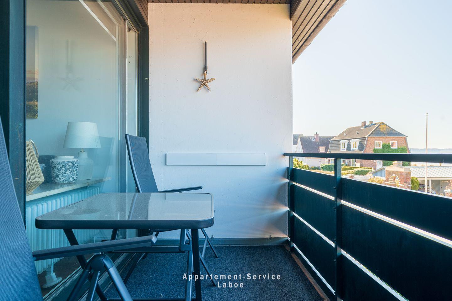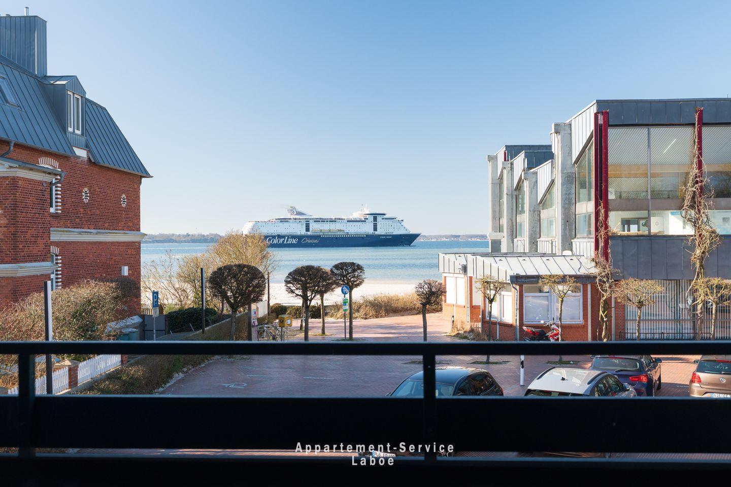 Ferienwohnung Koralle in Laboe mit traumhaftem Meerblick und möbliertem Balkon, nur 20 Meter vom Strand entfernt.