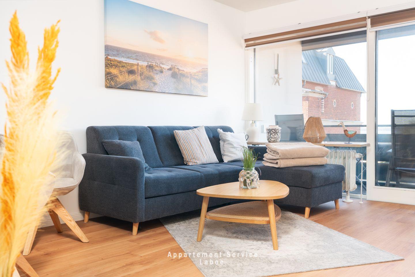 Die 48 m² große Wohnung befindet sich im 1. Obergeschoss und verwöhnt Dich mit einem atemberaubenden Meerblick sowohl aus dem Wohnzimmer als auch aus dem Schlafzimmer und natürlich vom Balkon. Das Wohnzimmer ist mit einer gemütlichen Sitzgruppe und einem TV ausgestattet und lädt zum Entspannen ein. Der möblierte Balkon bietet die perfekte Gelegenheit, die frische Meeresbrise zu genießen.