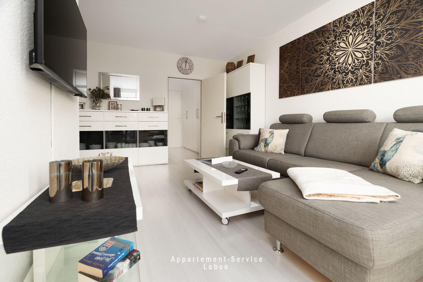 Gemütliche 2-Zimmer-Ferienwohnung mit Balkon, nahe Strand und Hafen in Laboe, ideal für erholsame Ostseeferien.