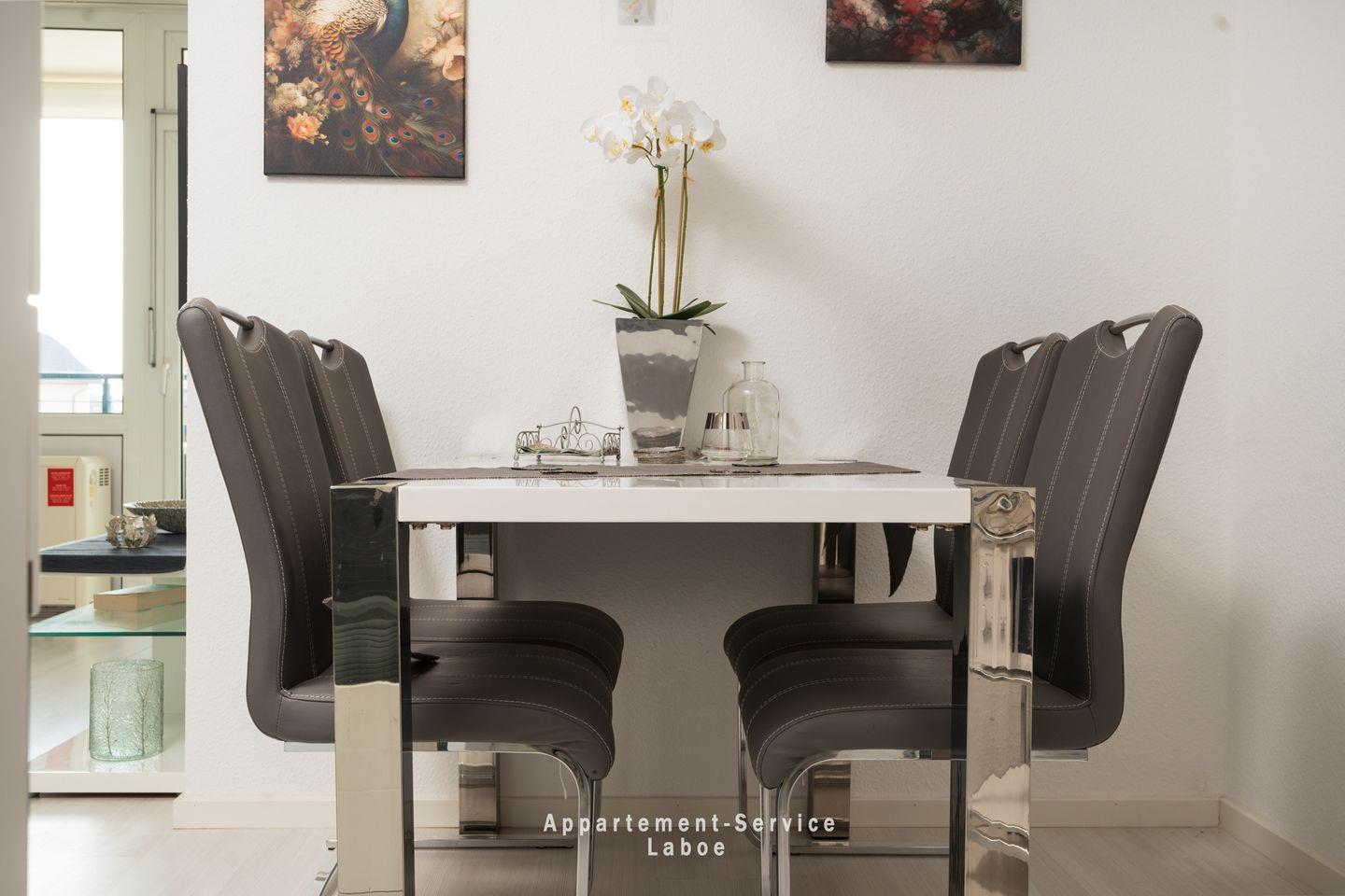 Der möblierte Balkon ist der perfekte Platz, um die frische Ostseeluft zu genießen – ob morgens mit einer Tasse Kaffee oder abends bei einem Glas Wein. Die Wohnung ist praktisch über den Aufzug erreichbar und bietet einen eigenen PKW-Stellplatz. Für deine Fahrräder gibt es zudem sichere Abstellräume, sodass du Laboe ganz unkompliziert erkunden kannst.
