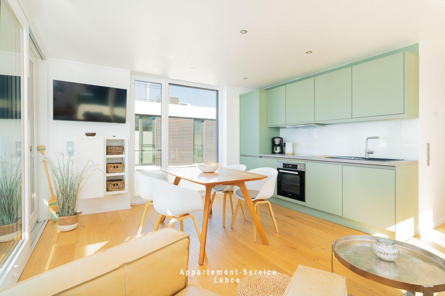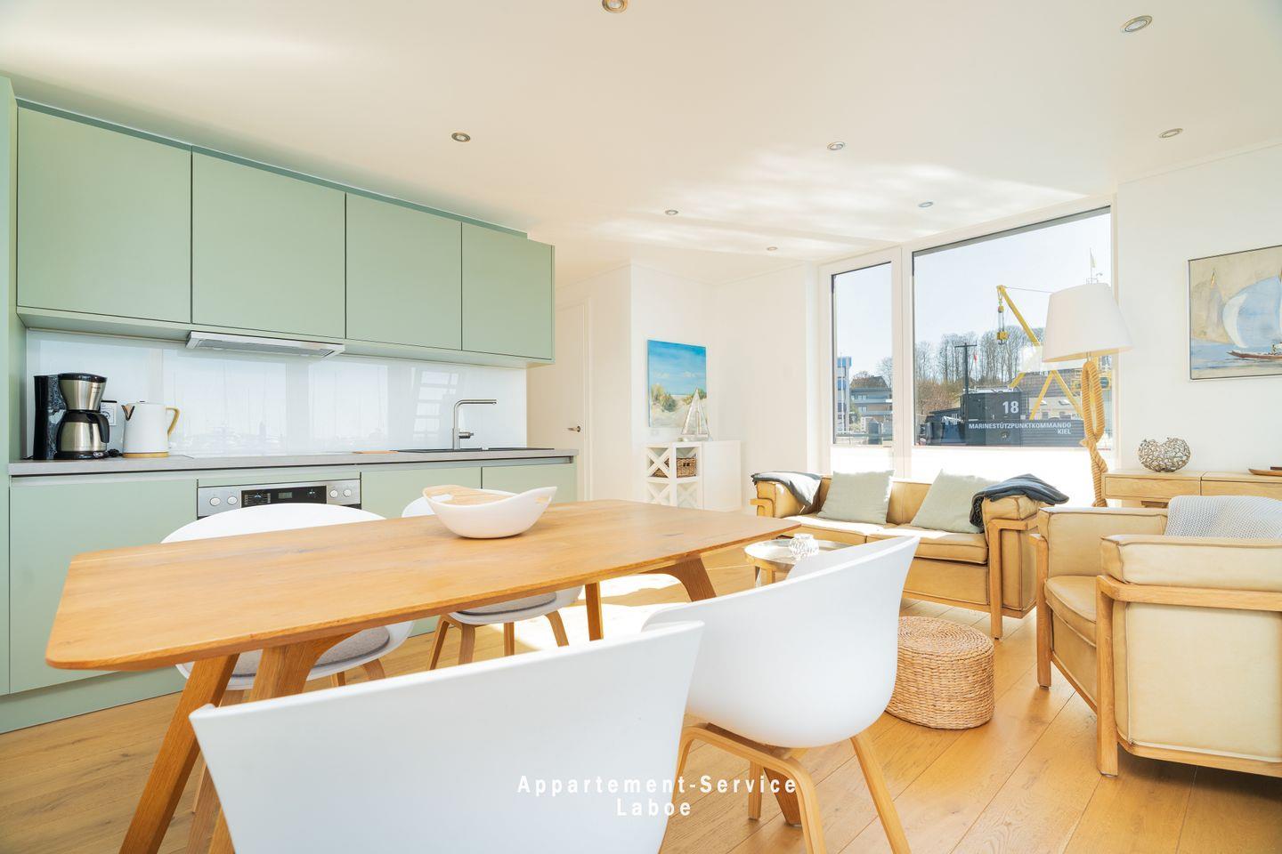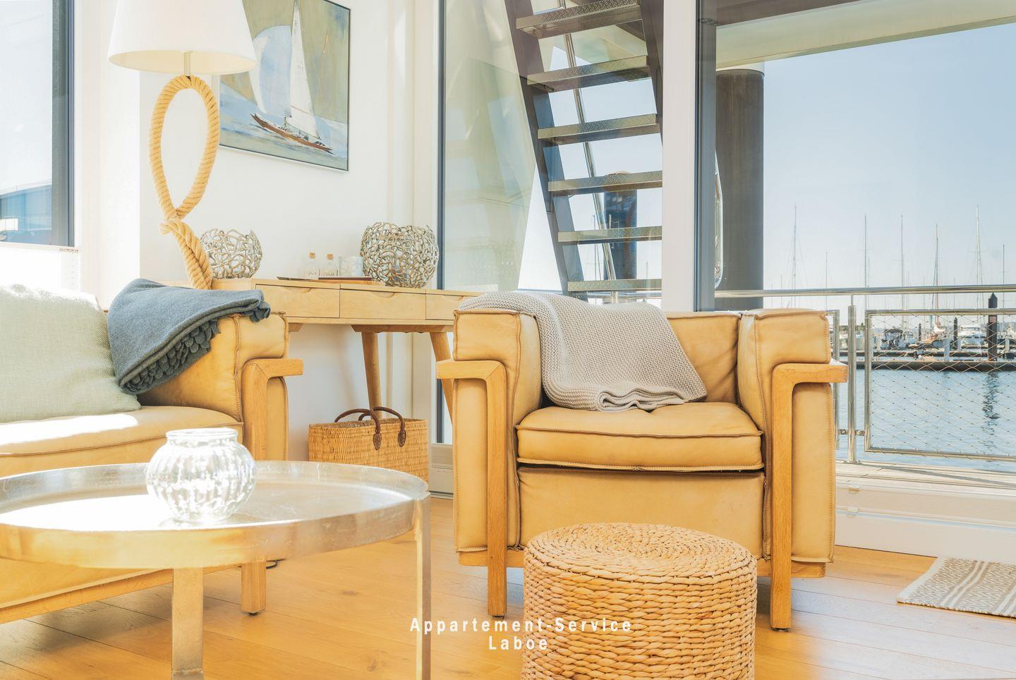 Hausboot Ankerplatz: 50?m² schwimmendes Apartment mit Sauna & Sonnendeck. Hausboot direkt im Hafen von Laboe für 2 Personen. Offener Wohn-/Essbereich mit Panoramafenstern, Verdunklungsplissees, Infrarotheizung, TV, WLAN. Schlafzimmer mit Doppelbett. Duschbad mit WC. Voll ausgestattete Küche. Private Sauna an Bord. Sonnenterrasse am Bug und 360°-Panoramadeck mit Lounge-Möbeln. Strandnah, Cafés und Einkaufsmöglichkeiten. Nichtraucher. Haustiere willkommen!