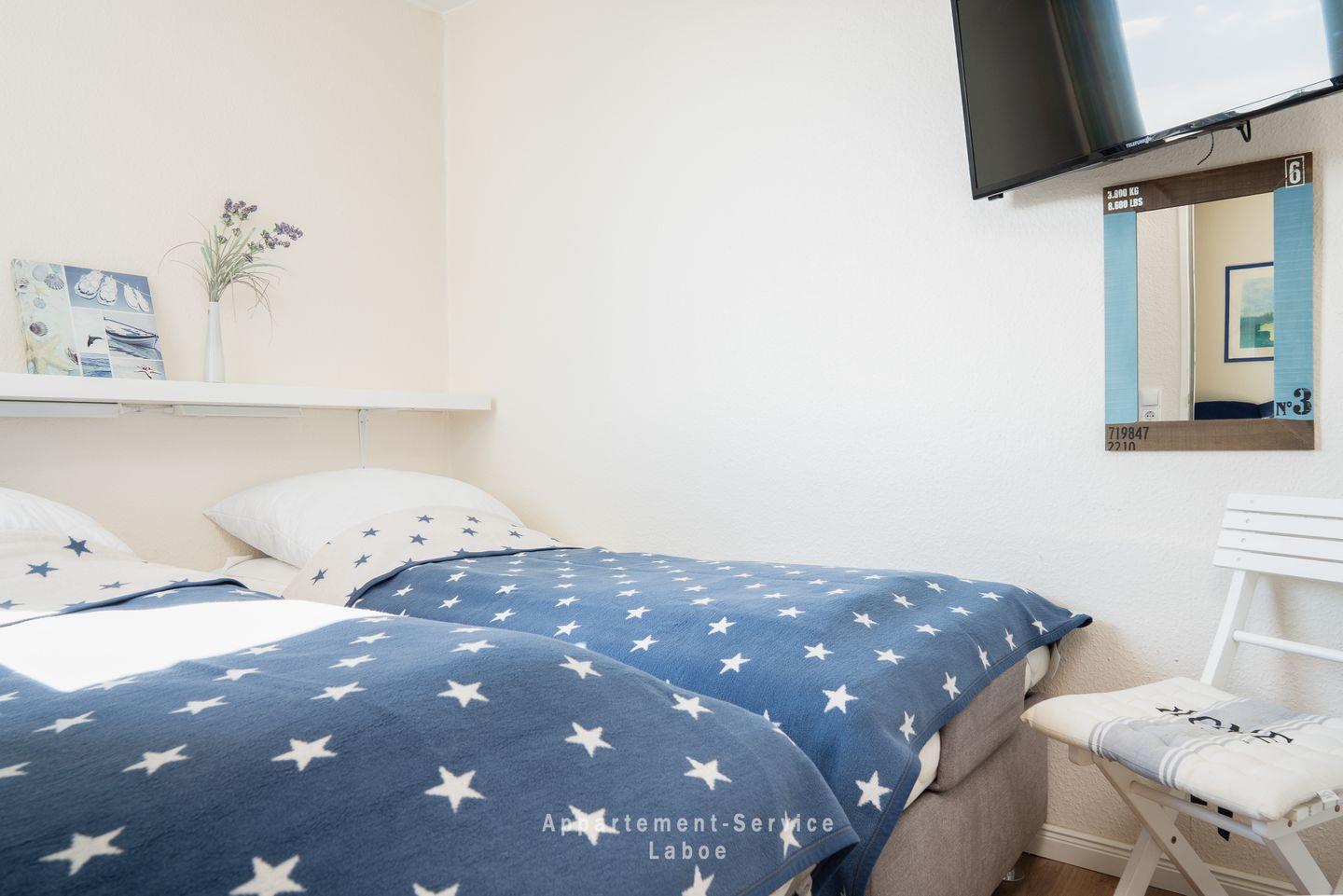 Die beiden Schlafzimmer sind so gestaltet, dass jeder seinen Platz findet. Im ersten Raum stehen zwei komfortable Boxspringbetten, die erholsamen Schlaf versprechen. Das zweite Schlafzimmer ist besonders flexibel und ideal für Familien. Hier befinden sich zwei gemütliche Einzelbetten sowie ein zusätzliches Unterbett, das clever in einer Bettkassette verborgen ist. Dieses eignet sich ausschließlich für Kinder und macht den Raum zum perfekten Rückzugsort für kleine Gäste.