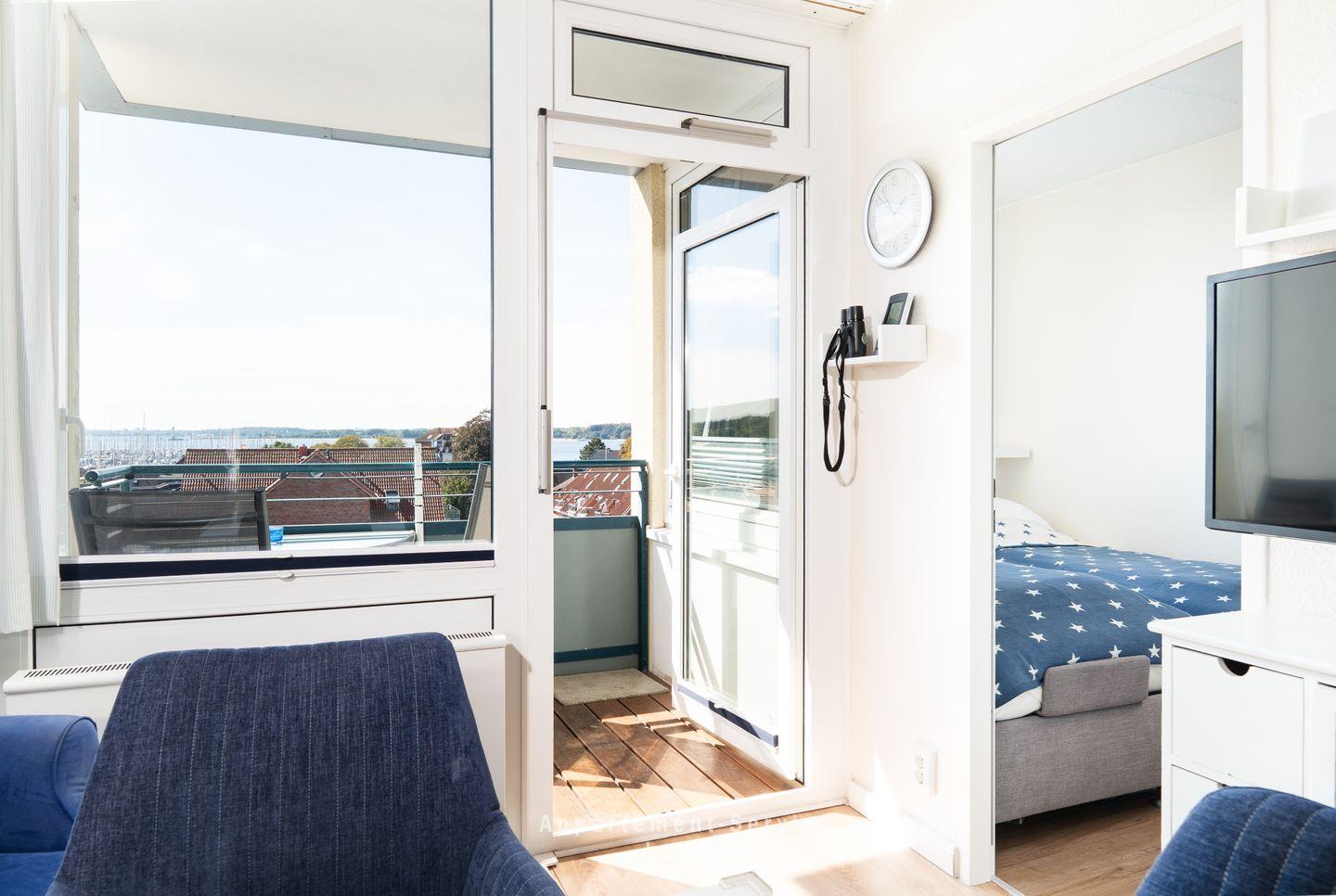 Ein besonderes Highlight ist der abgeschlossene Balkon, der durch seine Lage Schutz und Privatsphäre bietet. Hier kannst du in Ruhe die frische Seeluft genießen, die Gedanken schweifen lassen und den Blick über die Kieler Förde immer wieder neu entdecken.