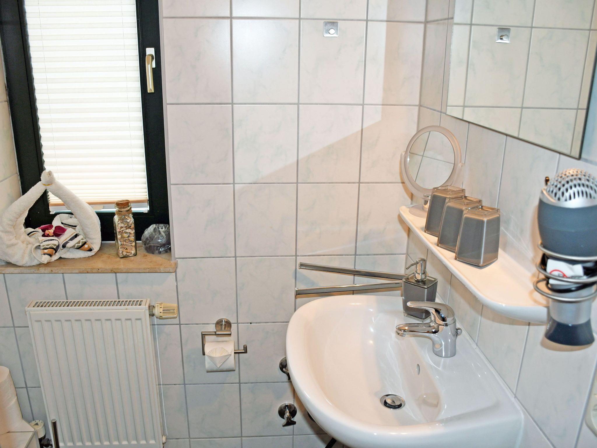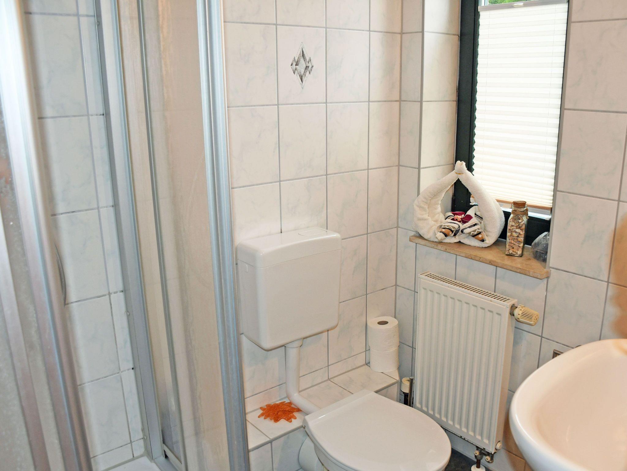 Das schöne Bad ist mit Dusche, WC und Waschbecken ausgestattet., es verfügt über Tageslicht.