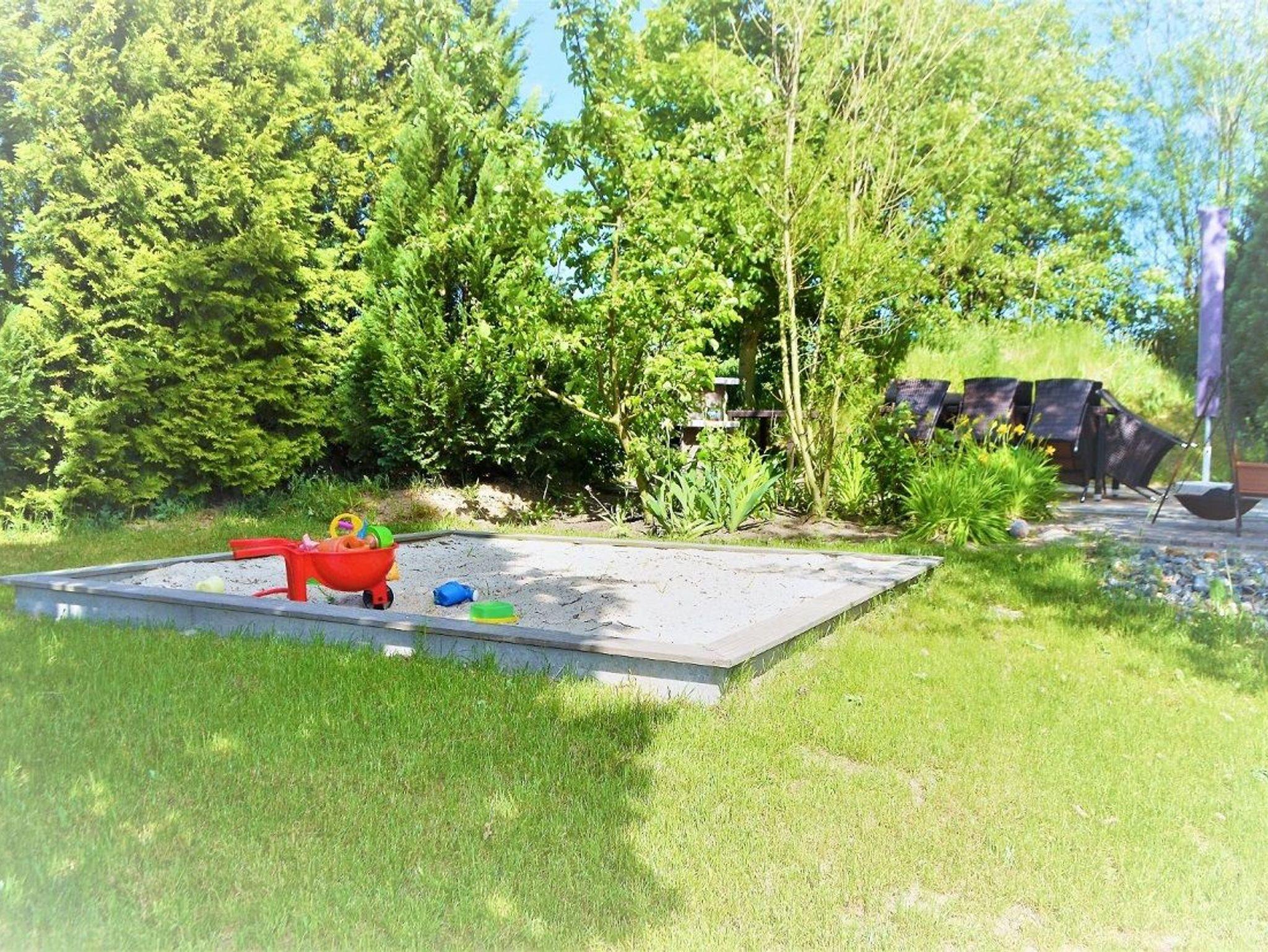 Garten mit Rasenfläche zum Spielen (Spielplatz für die Jüngsten, Fußball, Badminton usw.)