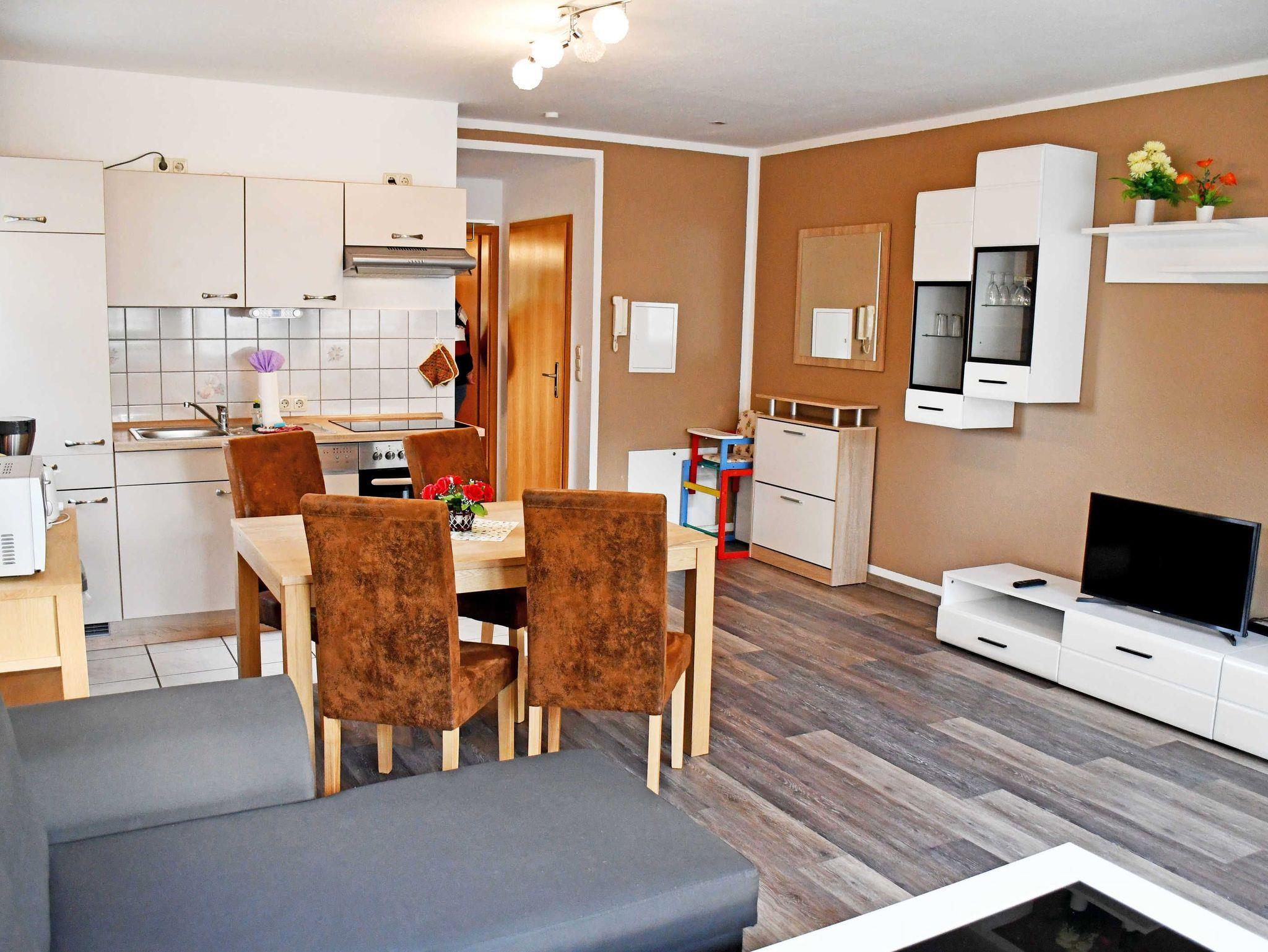Das 2-Raum-Appartement liegt im Erdgeschoss und ist ca. 48 qm groß. Es bietet Platz für maximal 4 Erwachsene sowie ein Kind im Kinderreisebett und wurde modern und komfortabel eingerichtet. Dieses Appartement verfügt auch über einen WLAN-Internet- und einen Telefonanschluss.