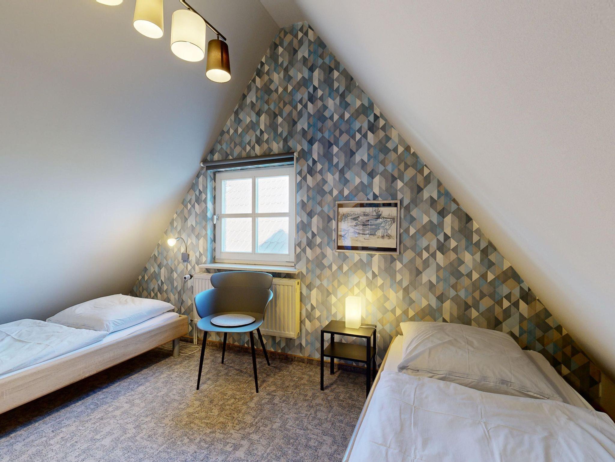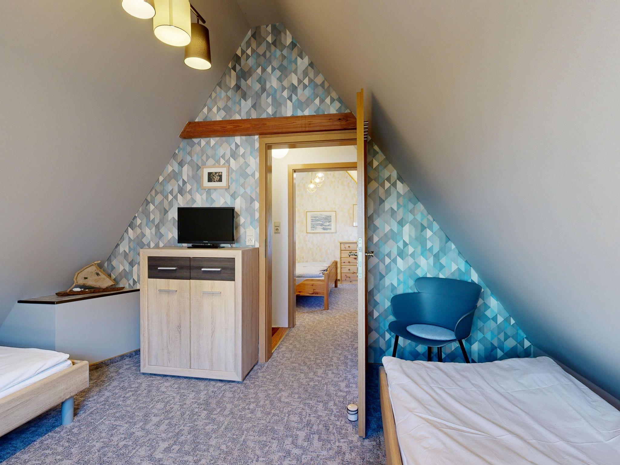 * 1 Schlafzimmer mit zwei Einzelbetten und Sat-TV