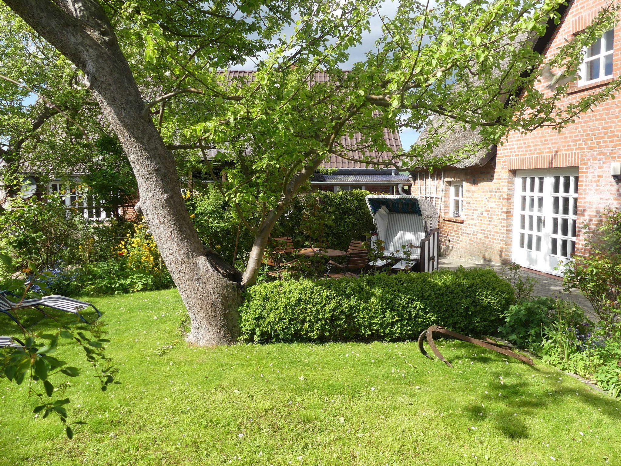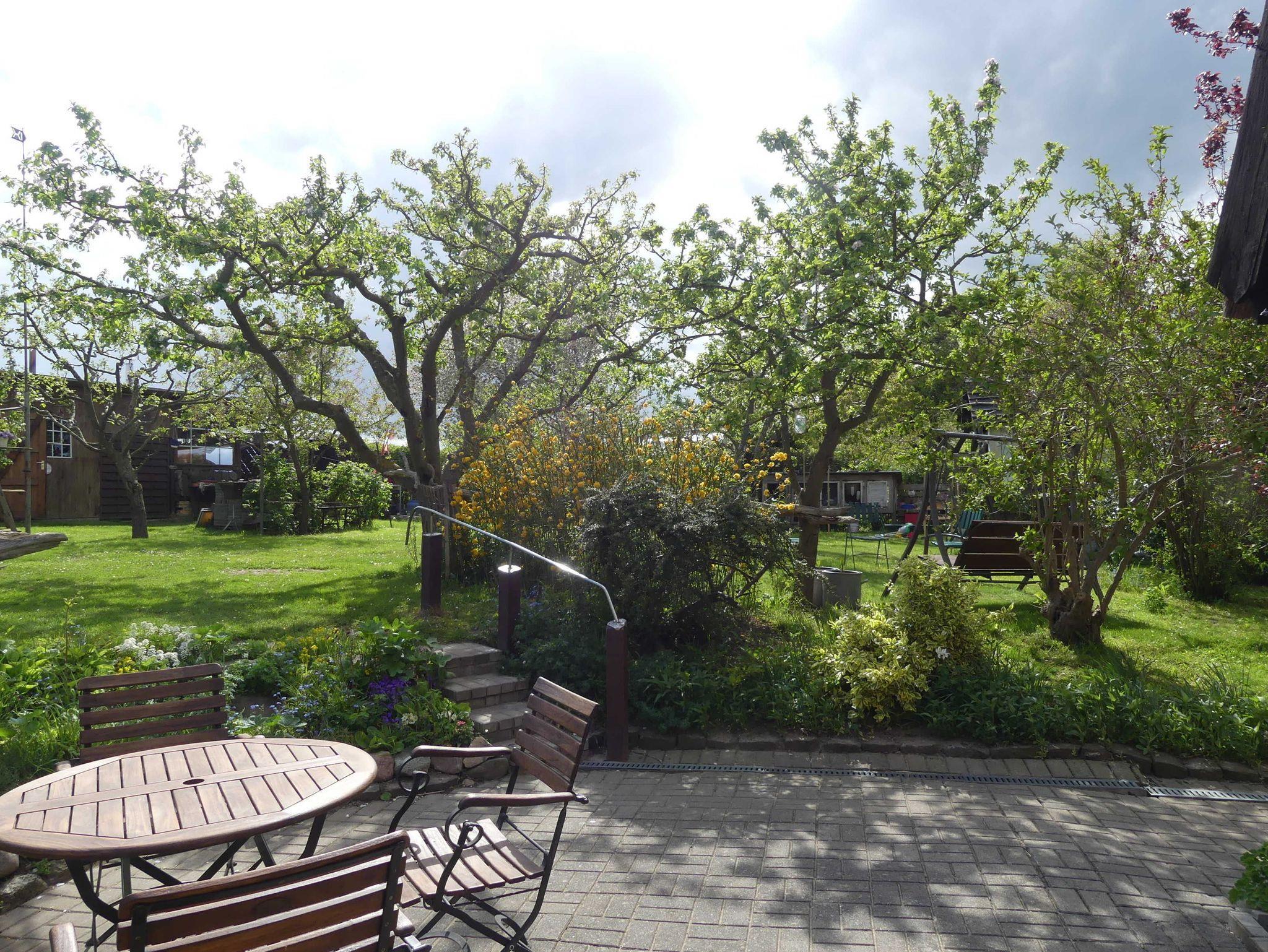 * großer Garten mit hübschen Blumenrabatten und altem Obstbaumbestand (4 Liegen vorhanden)