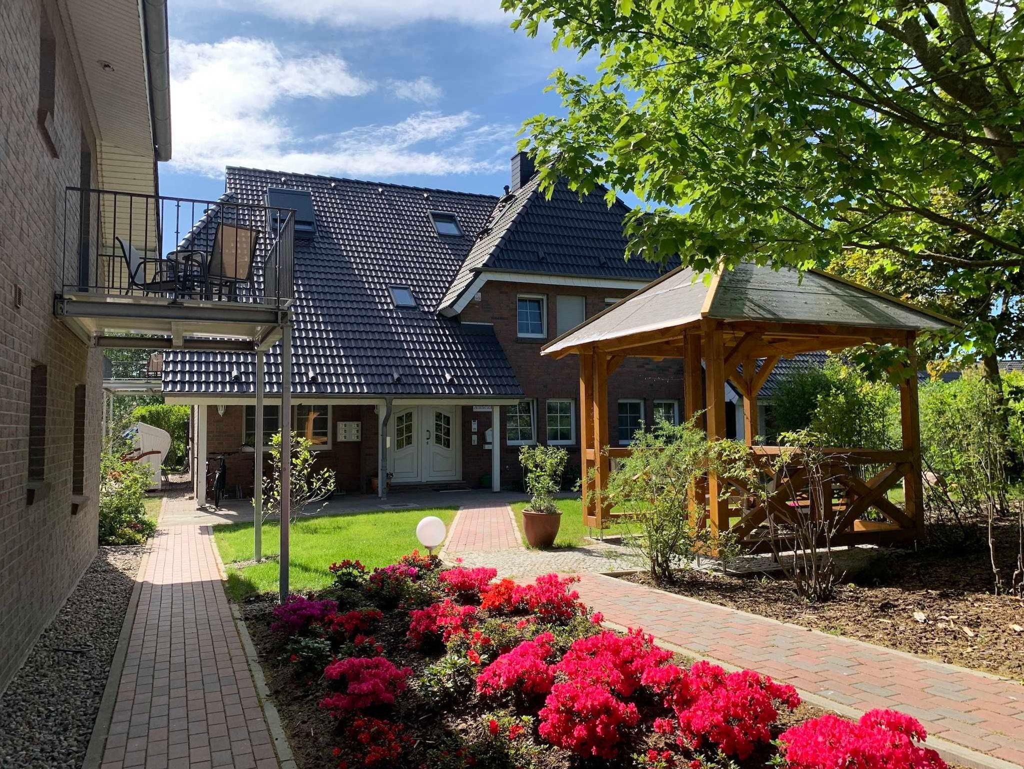 Die große Gartenanlage fügt sich harmonisch in die Landschaft ein und bietet viel Platz zum Erholen, Entspannen und Spielen. Im Garten befinden sich Terrassen mit Sitzgruppen, Strandkörbe, eine Liegewiese, Liegestühle und Sonnenschirme. Außerdem gibt es einen Grillplatz und einen Kinderspielplatz.