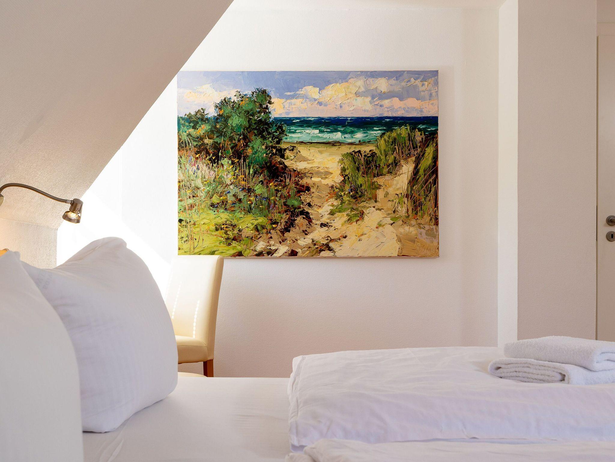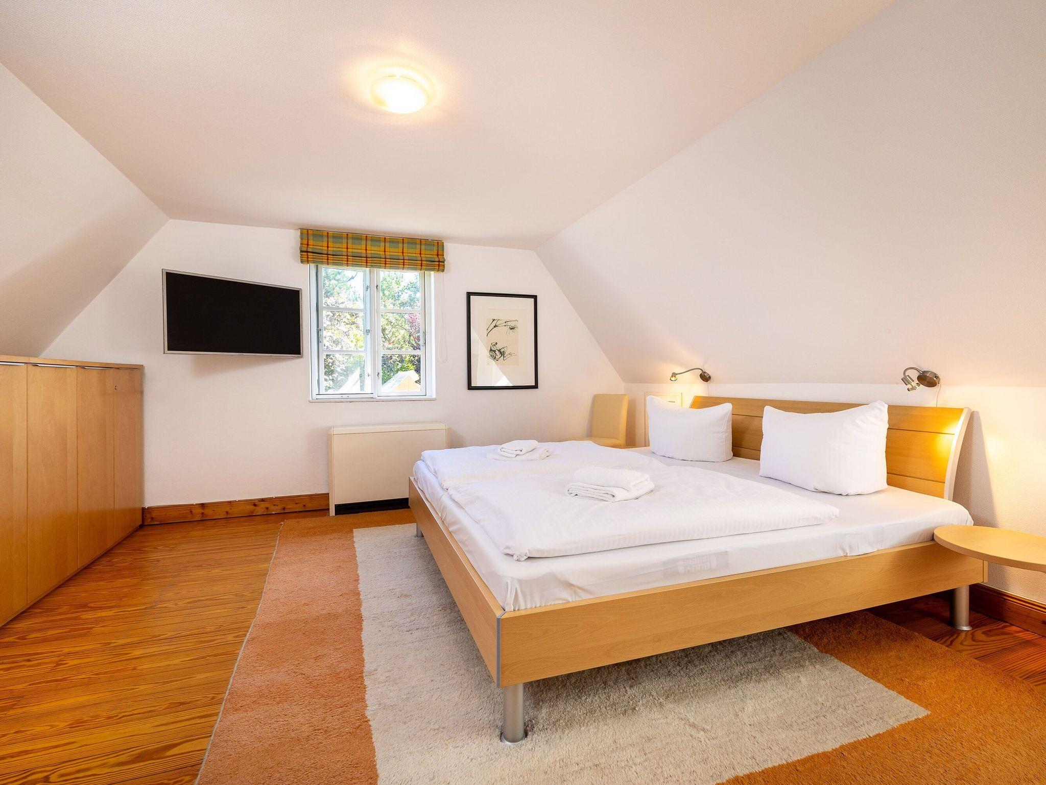 Ein paar Treppenstufen höher finden Sie im Dachgeschoss Ihre beiden Schlafzimmer mit jeweils einem komfortablen Doppelbett. Hier werden Sie himmlisch nächtigen. Durch die bei Bedarf geöffneten Fenster ? versehen mit Insektenschutzgittern ? kommt im Sommer eine kühle Brise vom nicht weit entfernten Meer. Beide Schlafzimmer verfügen auch über einen zusätzlichen Fernseher. Ein weiteres Duschbad/WC rundet diese Etage ab.