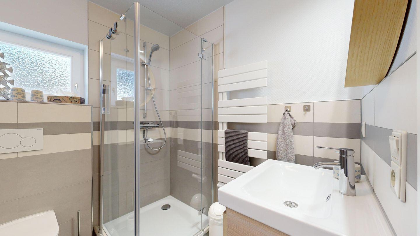 * 1 Badezimmer mit Dusche, WC und Föhn
