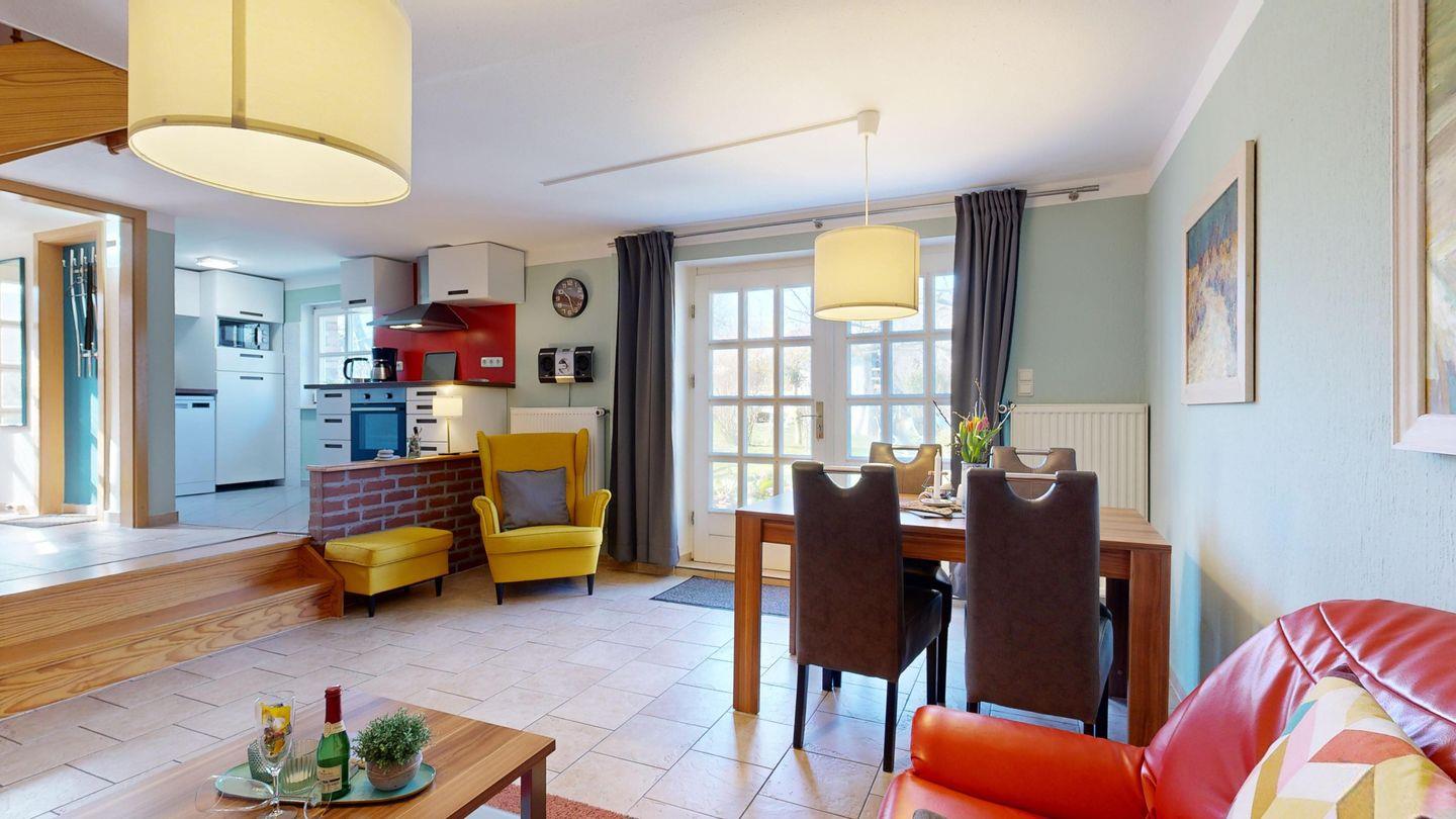 Für alle, die Komfort und Naturidylle lieben! Diese charmante Doppelhaushälfte verbindet modernes Wohnen mit ländlicher Ruhe in einem authentischen Fischerort. Nach erholsamen Spaziergängen durch Rügen-Pur lädt das gemütliche Wohnzimmer zum Kuscheln ein, während die gut ausgestattete Küchenzeile zum gemeinsamen Kochen anregt. Abends genießen Sie den eigenen Strandkorb auf der Süd-Terrasse oder lassen den Tag im großen Garten bei einem Grillerlebnis ausklingen.
