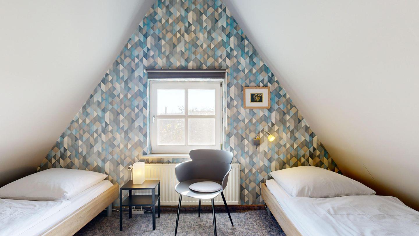 * 1 Schlafzimmer mit zwei Einzelbetten und Sat-TV