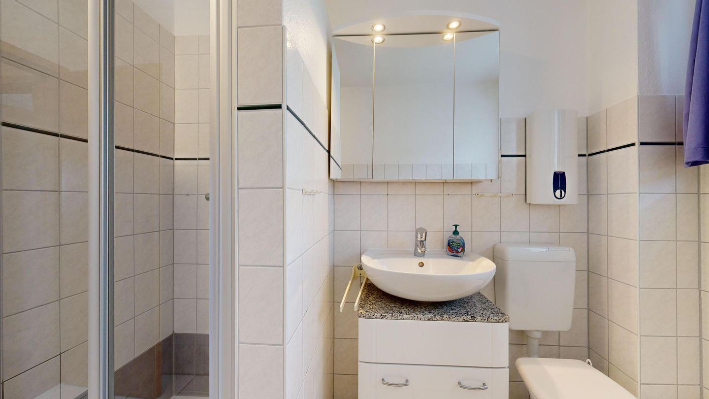 * 1 Badezimmer mit Dusche, WC und Föhn