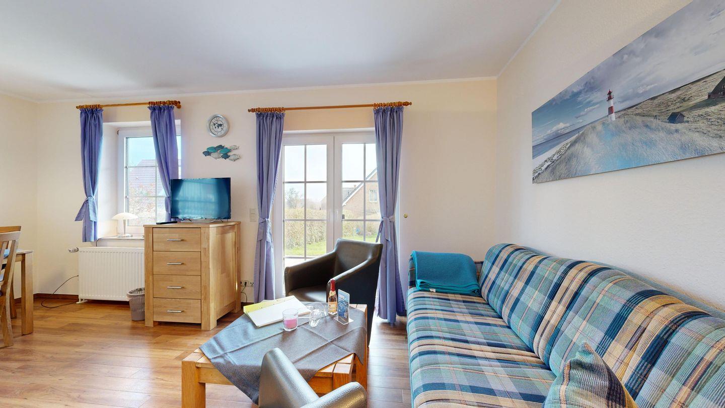 * Wohnzimmer: Couchgarnitur (Schlafgelegenheit für 1 Pers.), Smart-TV, Radio mit CD, WLAN- Internetanschluss