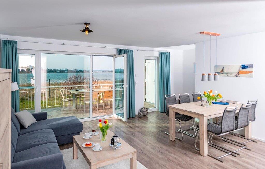 Dieses Ferienhaus in Olpenitz bietet traumhaften Wasserblick, privaten Wellnessbereich und großzügige Terrassen für entspannte Urlaubstage.