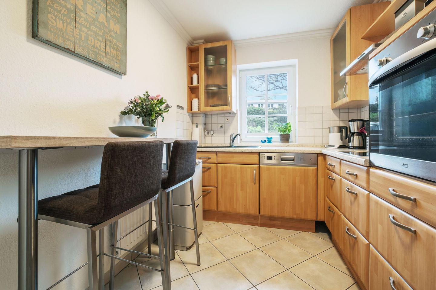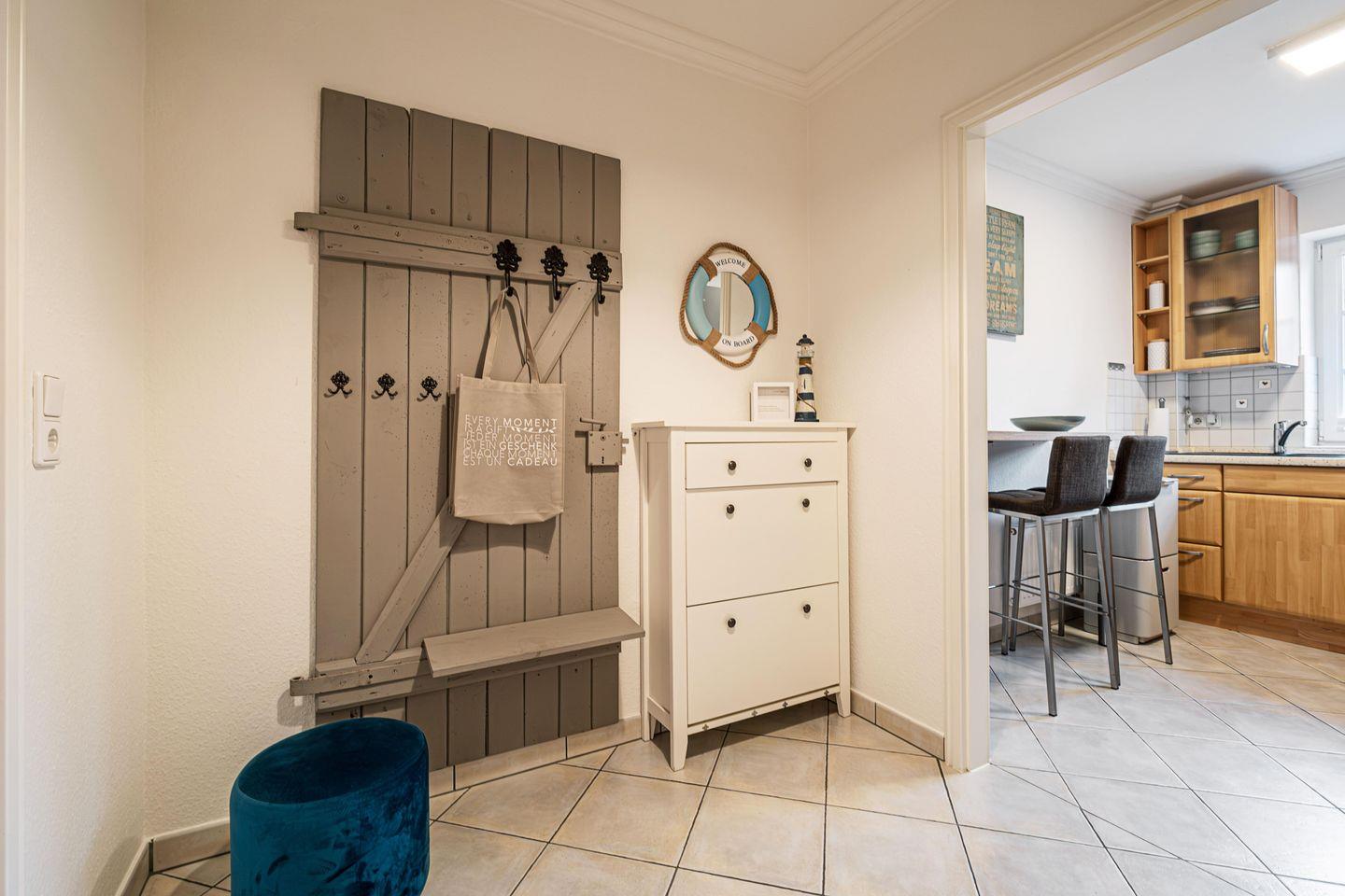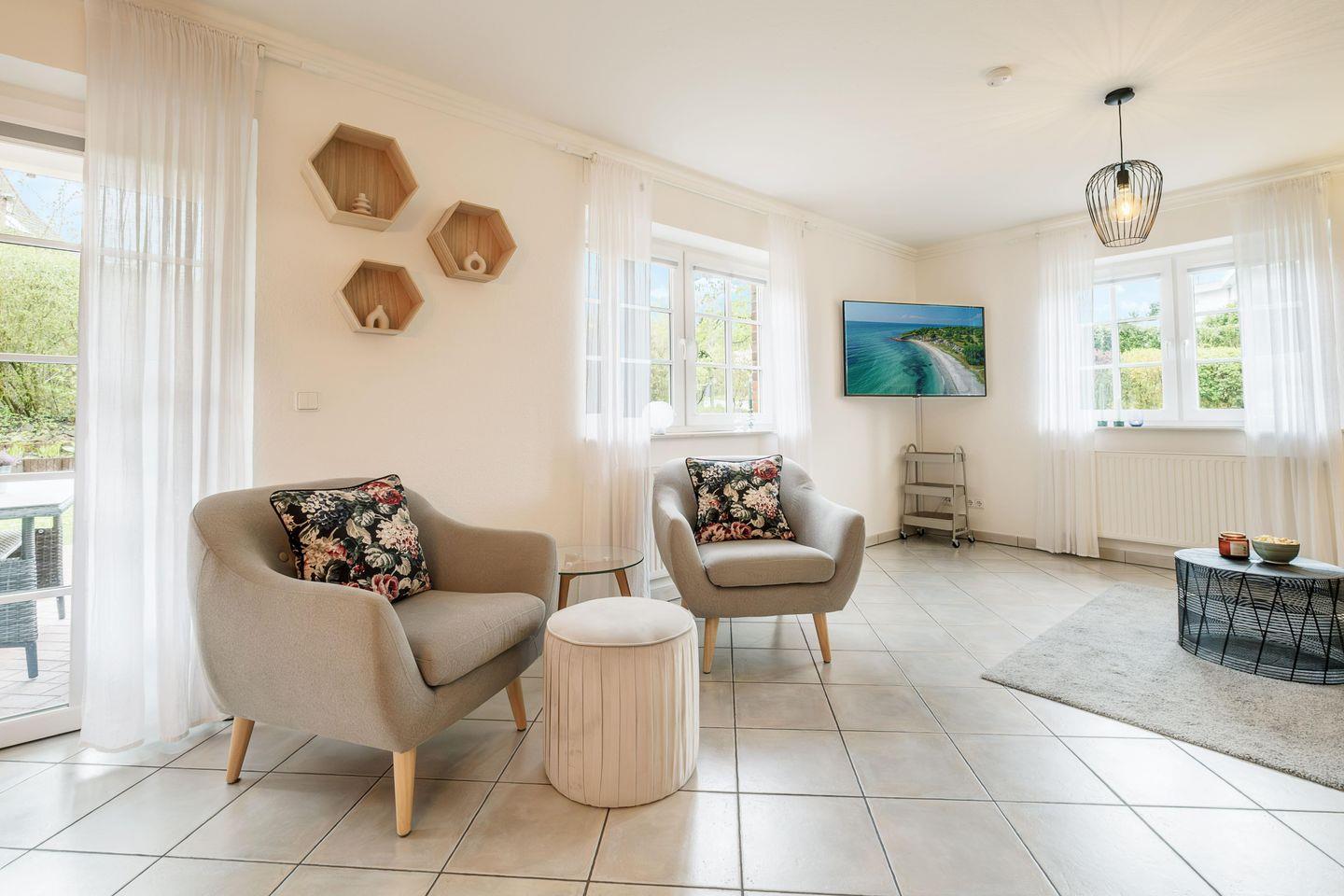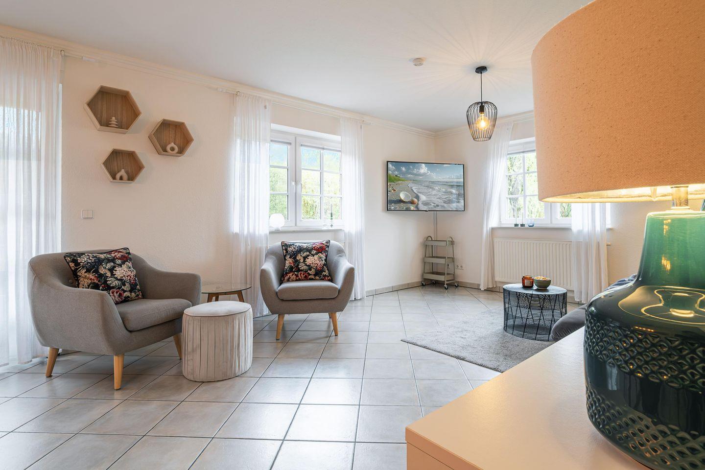 Die schöne 2-Zimmer-Wohnung ist stilvoll in Naturtönen sowie klaren Formen gehalten und bietet alles für einen rundum gelungenen Urlaub am Meer.