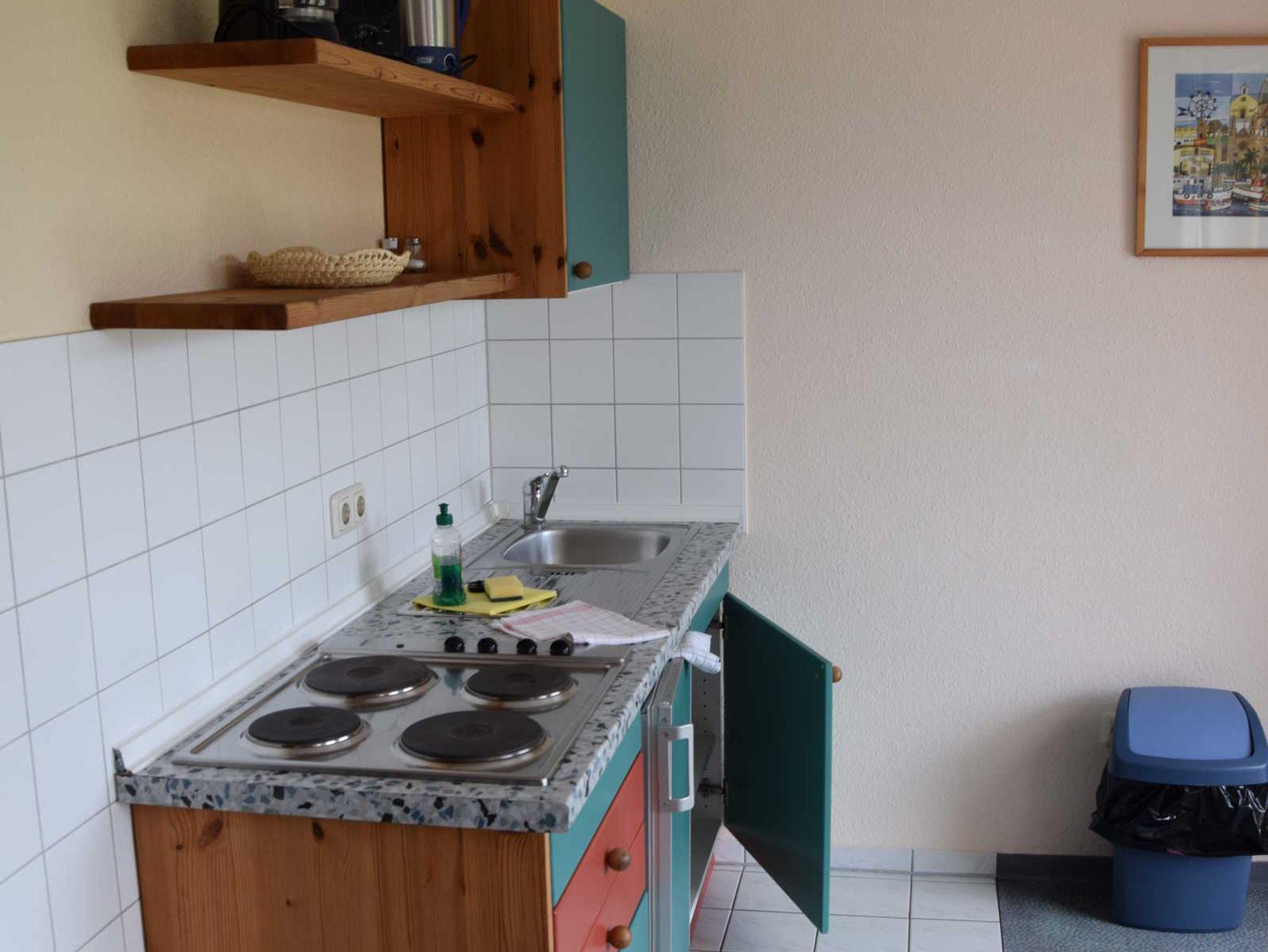 Ihr Zimmer liegt im Obergeschoss. Es ist ausgestattet mit einem Doppelbett (Boxspringbett), Sofa, Tisch und Stühlen sowie einer Mini-Küchenzeile. Bei Bedarf kann ein Kind zusätzlich auf dem Sofa schlafen oder ein Babybett wird zugestellt. Dazu gehören Dusche/WC und ein überdachter Balkon mit Blick in den Garten, den Sie ebenfalls nutzen können.