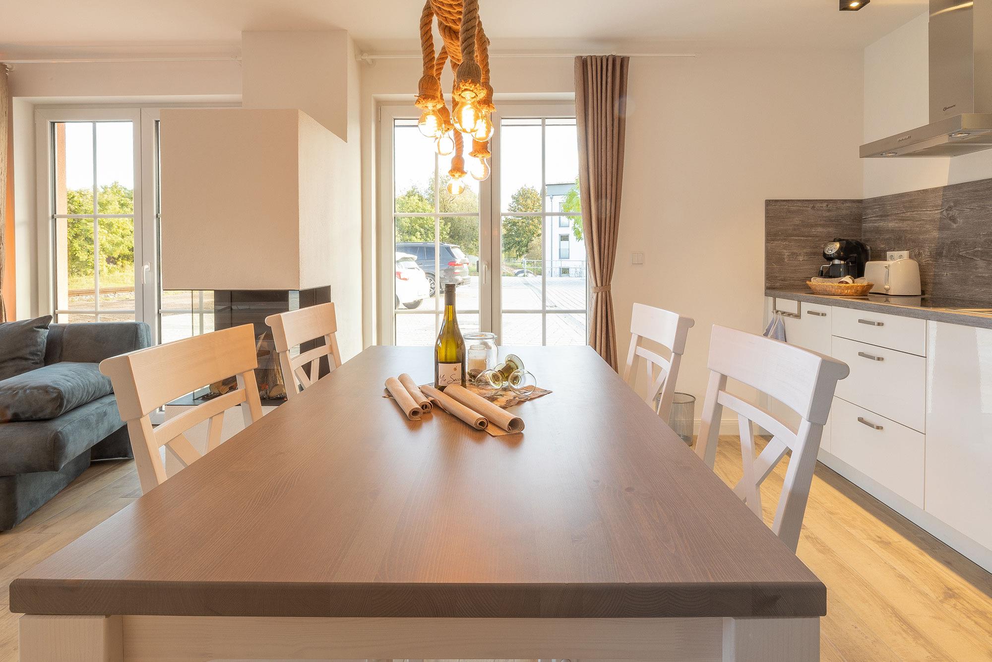 Die Wohnung selbst überzeugt, u.a., mit kostenfreien W-Lan, kostenfreien Parkplatz und ihrer hochwertigen und maritimen Ausstattung. Die bekannten Seebäder Sellin, Binz und Göhren, sind nur wenige Kilometer entfernt.
