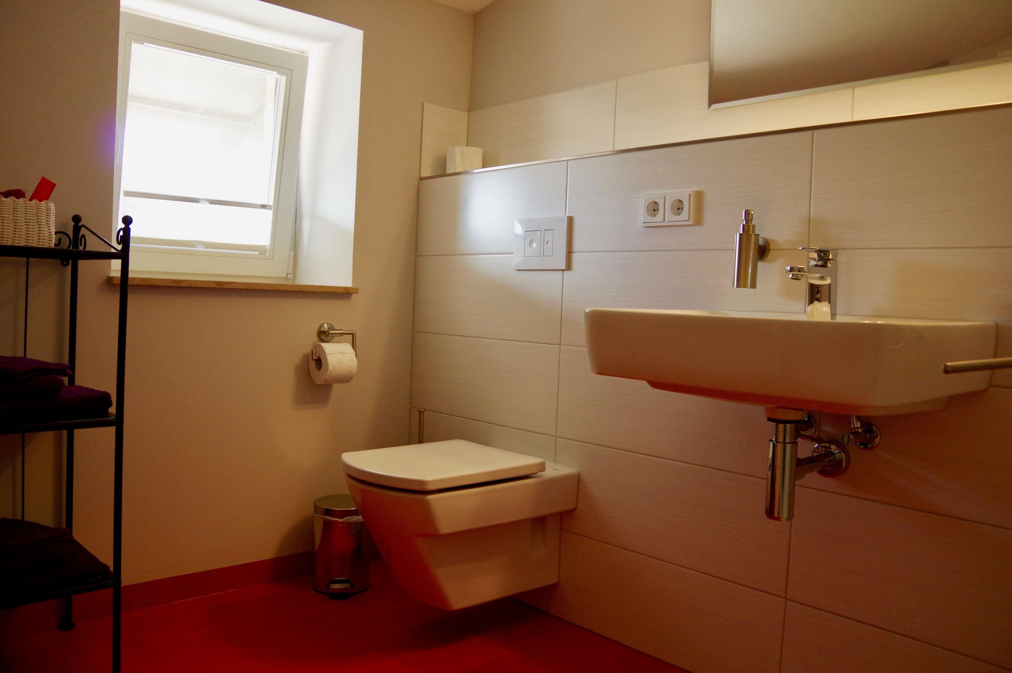 Ebenfalls im Erdgeschoß ist noch ein großzügiges mit hochwertiger Keramik ausgestattetes Gäste-WC vorhanden.