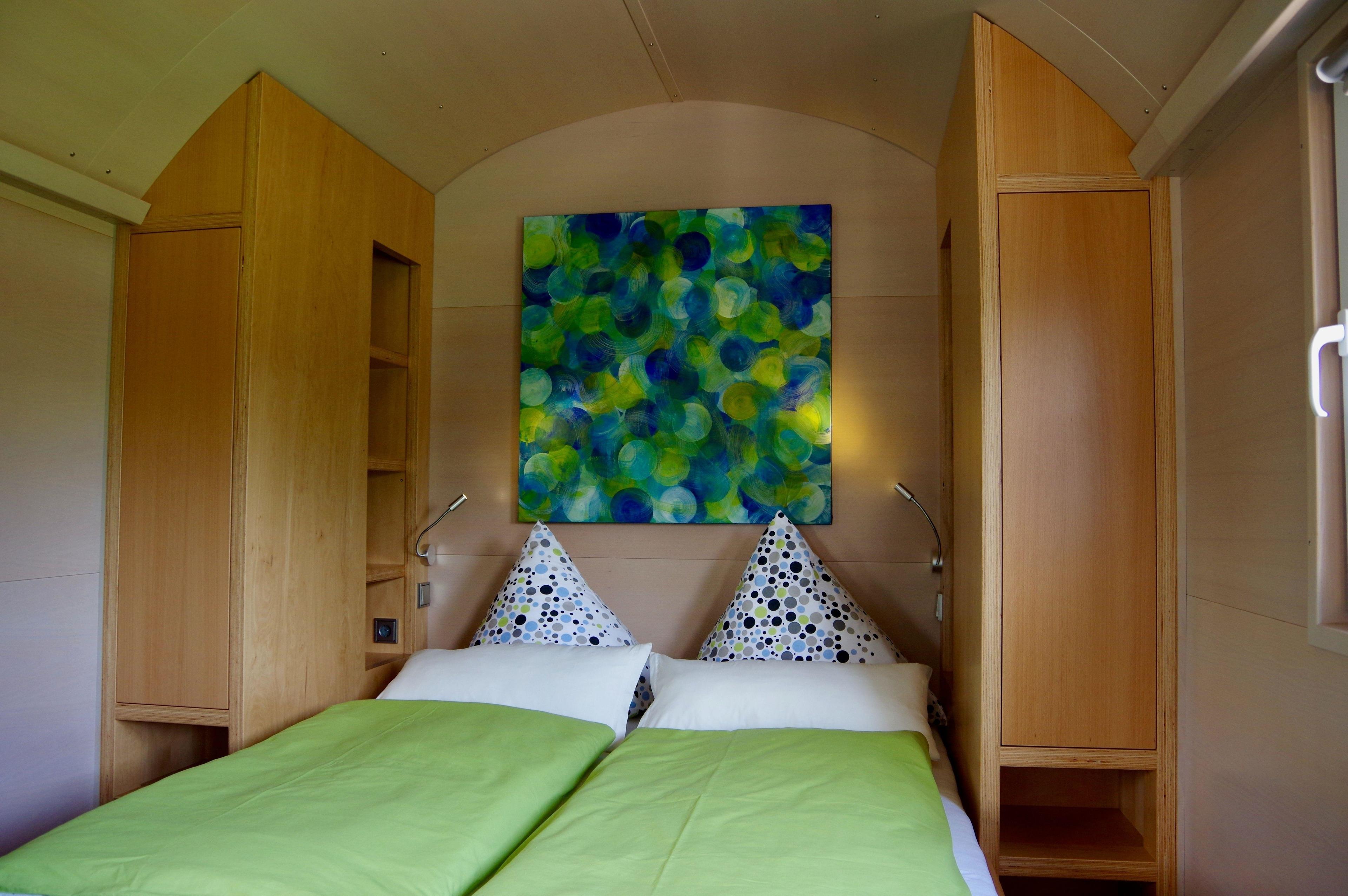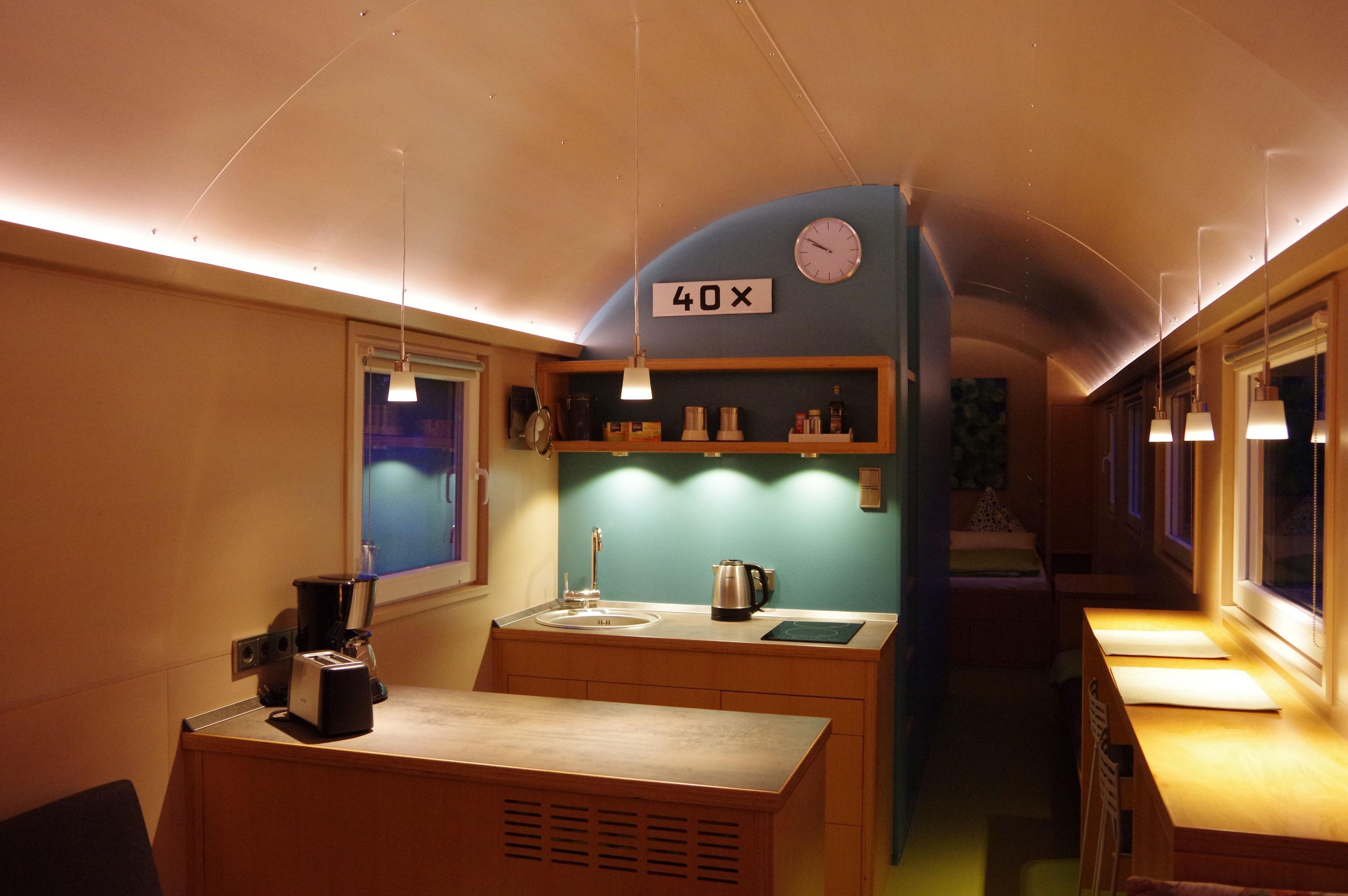 Es erwartet Sie eine außergewöhnliche, moderne Einrichtung in einem alten Güterwaggon, der später als Unterkunft für die Gleisbauer der Deutschen Reichsbahn (DR) gedient hat.