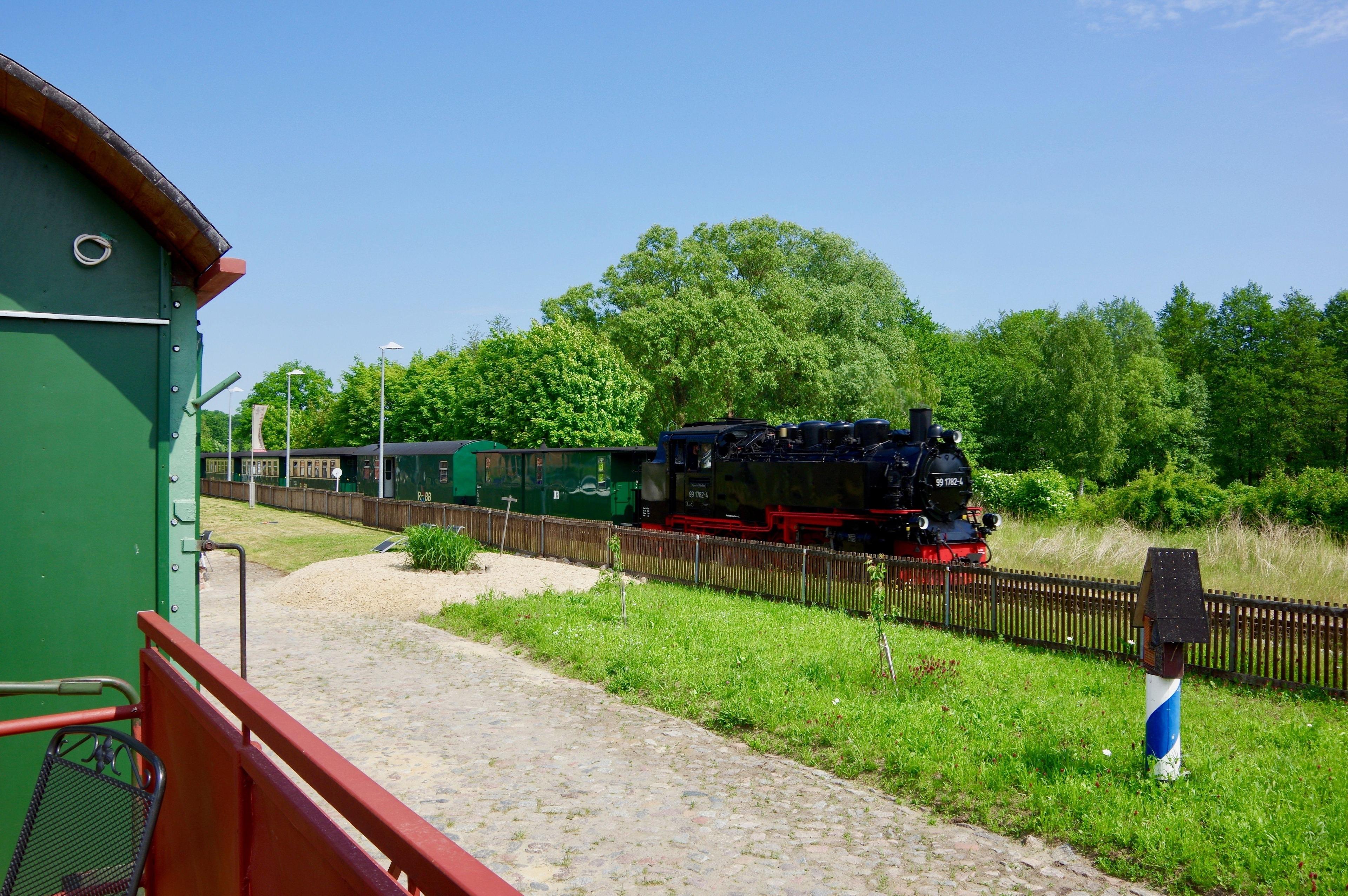 Der "Rasende Roland" schafft eine tolle Kulisse, wenn er im Sommer am Waggon gemütlich "vorbei schnauft" und Sie ihm zuwinken können.