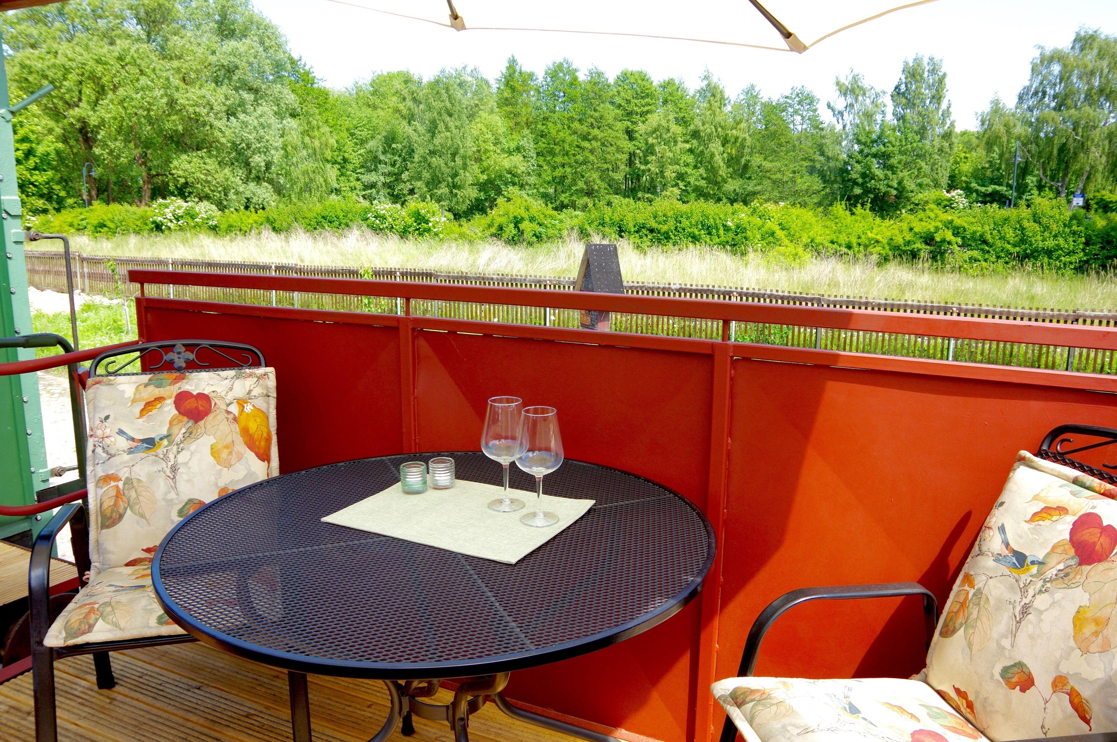 Die Terrasse lädt zum Erholen und zu romantischen Abenden mit einem Glas Wein ein.