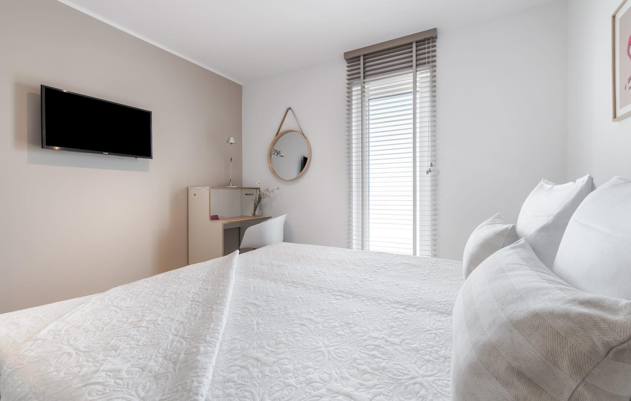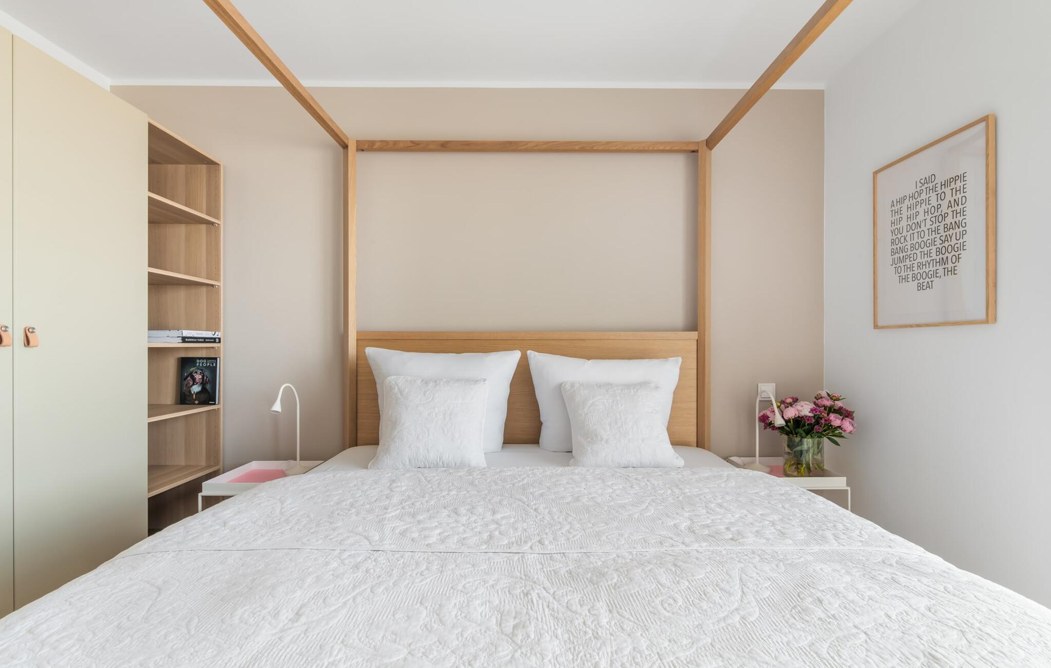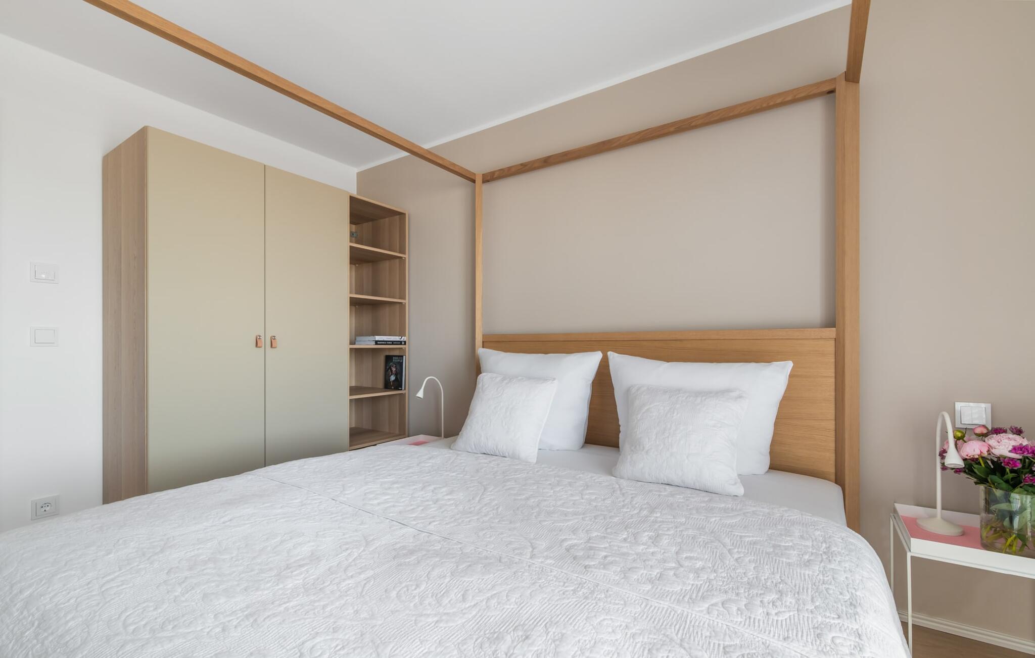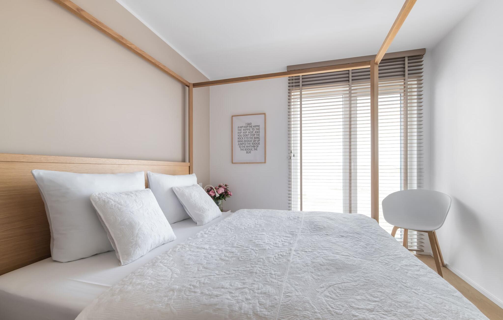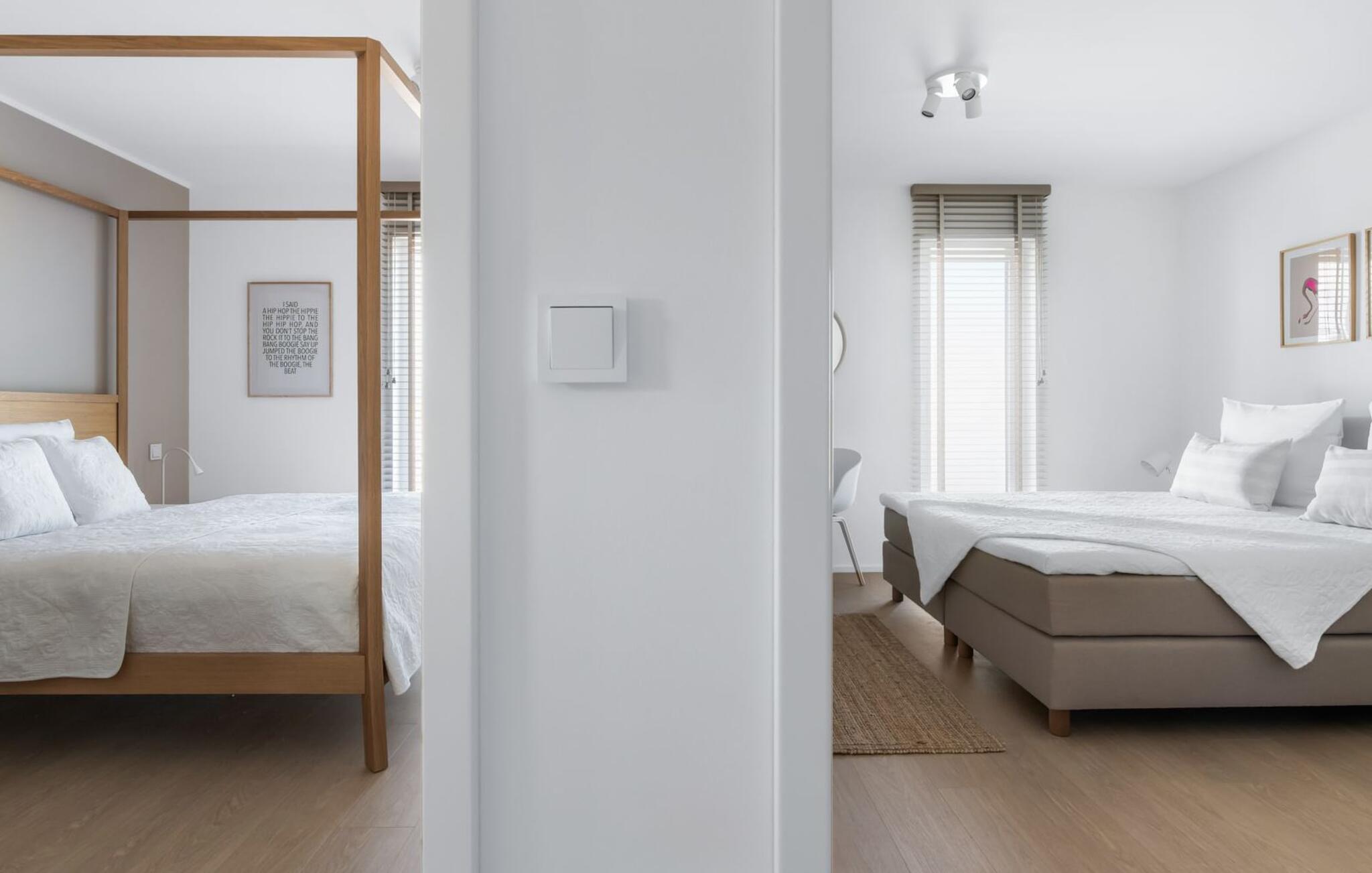 2 Schlafzimmer stehen für die nächtliche Erholung bereit. Im ersten Schlafzimmer findet ihr ein schönes Himmelbett, während das zweite Schlafzimmer mit zwei komfortablen Boxspring-Einzelbetten zum Träumen einlädt. Beide Schlafzimmer sind jeweils mit einem weiteren Fernseher ausgestattet.