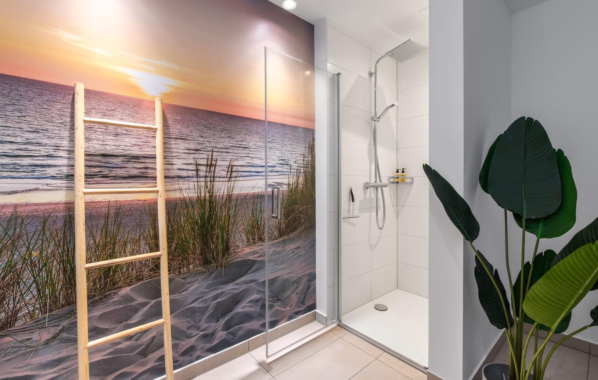 Das Duschbad mit bodengleicher Dusche und Sauna sorgt für unvergessliche Wellnessmomente