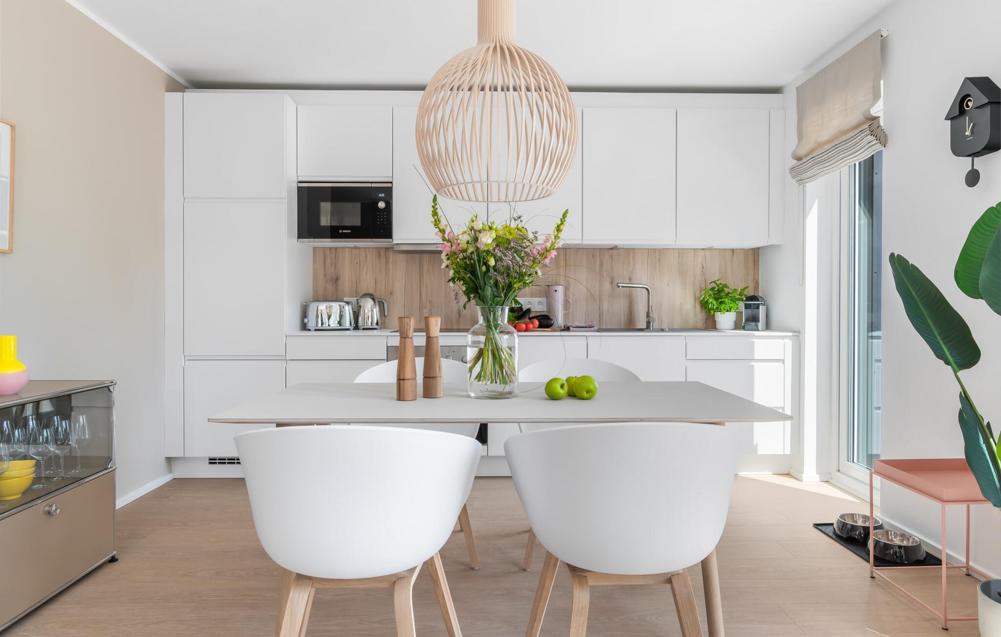 Die integrierte Küche ist hochwertig ausgestattet in der gemeinsames Kochen viel Spaß bereitet. Ergänzend steht ein WEBER Gasgrill für Euren Grillabend bereit.