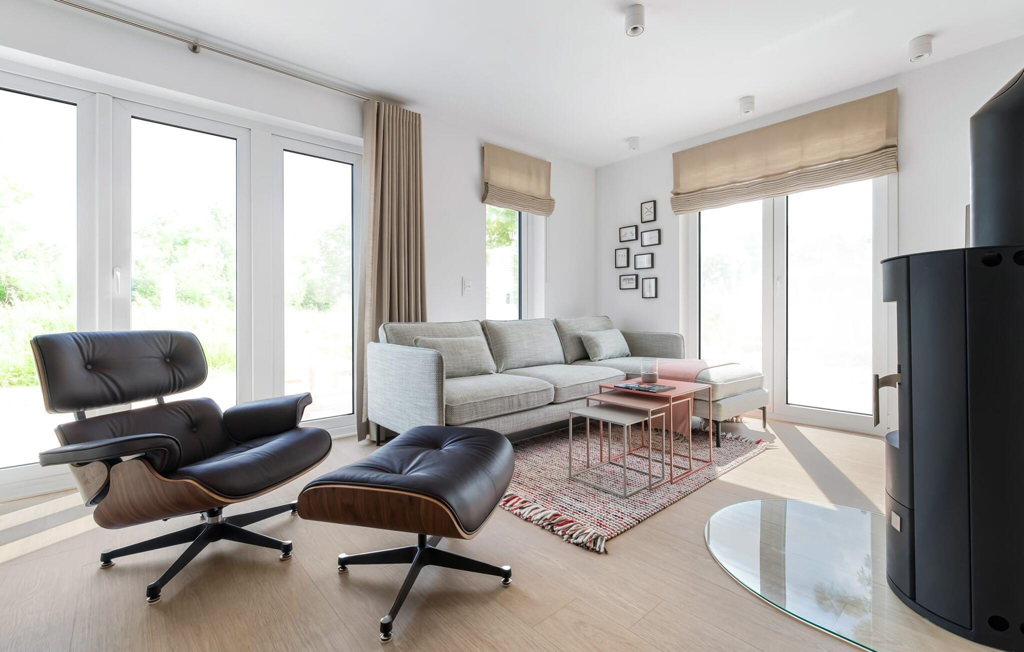 Design-Ferienlounge Lazy Days in Olpenitz mit Meerblick, Sauna, Kamin und moderner Ausstattung für entspannte Auszeiten.